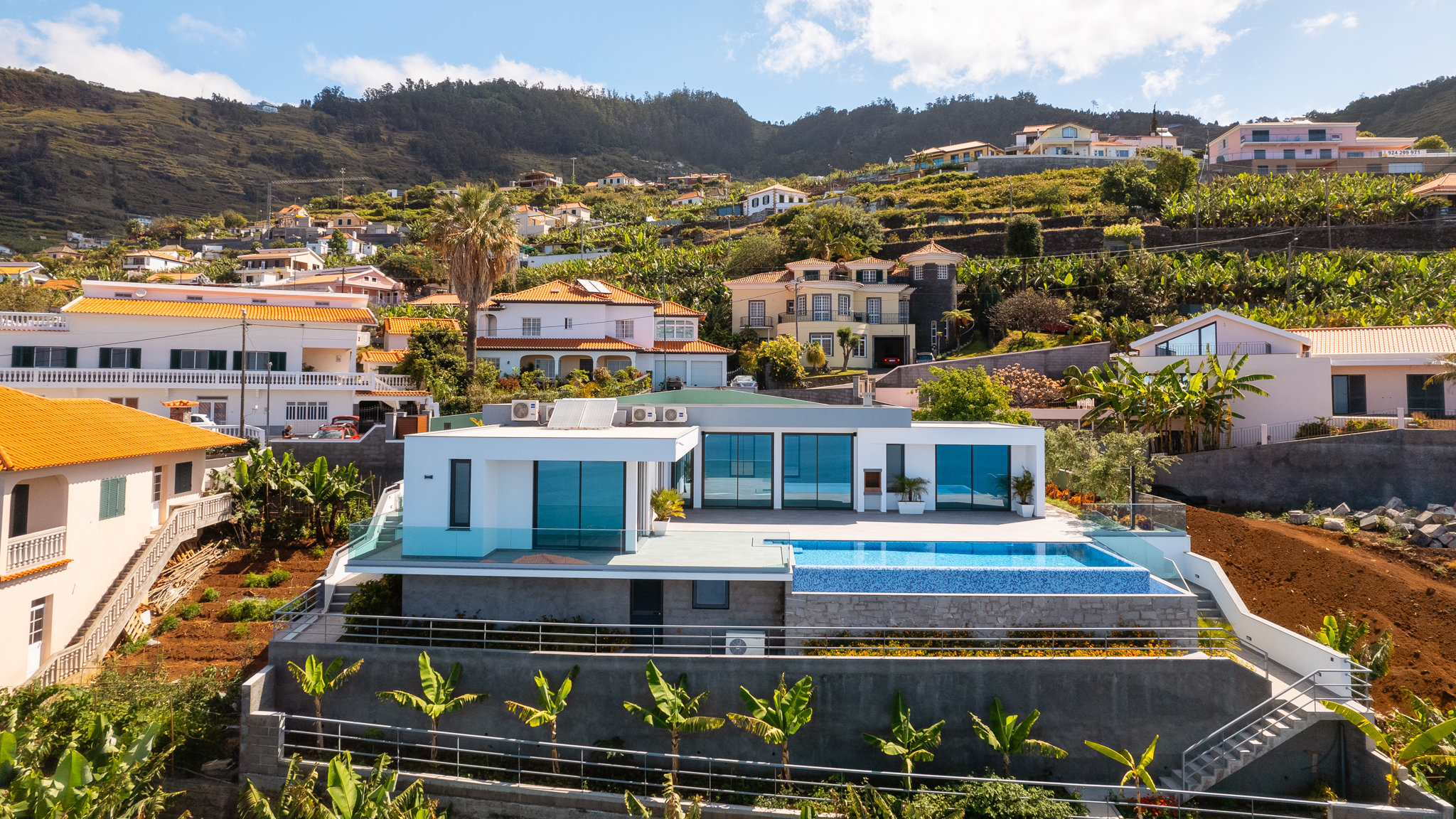 Harmonisch eingebettet in die wunderschöne Küstenlandschaft Madeiras, entsteht auf einem fantastischen, meernahen Grundstück unterhalb der Ortschaft Arco da Calheta ein beindruckendes Bauprojekt. Die Villa bietet einen spektakulären Blick auf den Atlantischen Ozean. Das momentan im Bau befindliche Projekt wird von einer renommierten Baufirma geleitet und verbindet moderne Ausstattung mit einem hohem Qualitätsniveau.