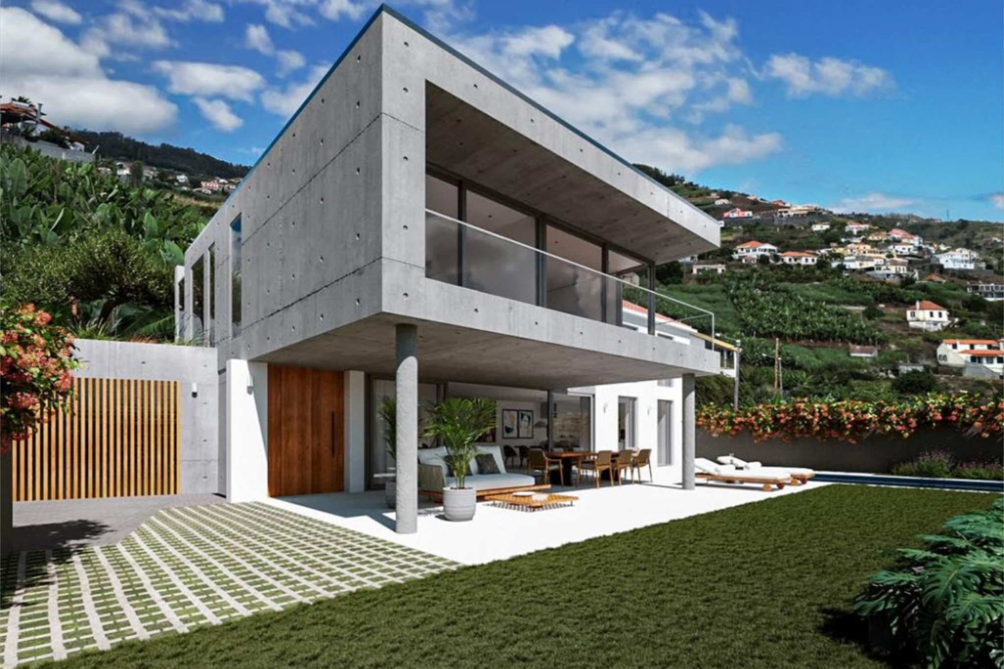 Versteckt im malerischen Ponta do Sol erwartet Sie diese außergewöhnliche Designervilla, die sich durch ihre klare Architektur und luxuriöse Ausstattung auszeichnet. Auf einem 700 m² großen Grundstück bietet die Villa mit einer großzügigen Wohnfläche von 194 m² höchsten Komfort und Stil. Im Erdgeschoss empfängt Sie ein offenes, lichtdurchflutetes Wohnzimmer, das nahtlos in die moderne Küche übergeht. Ein Gäste-WC vervollständigt das elegante Design.