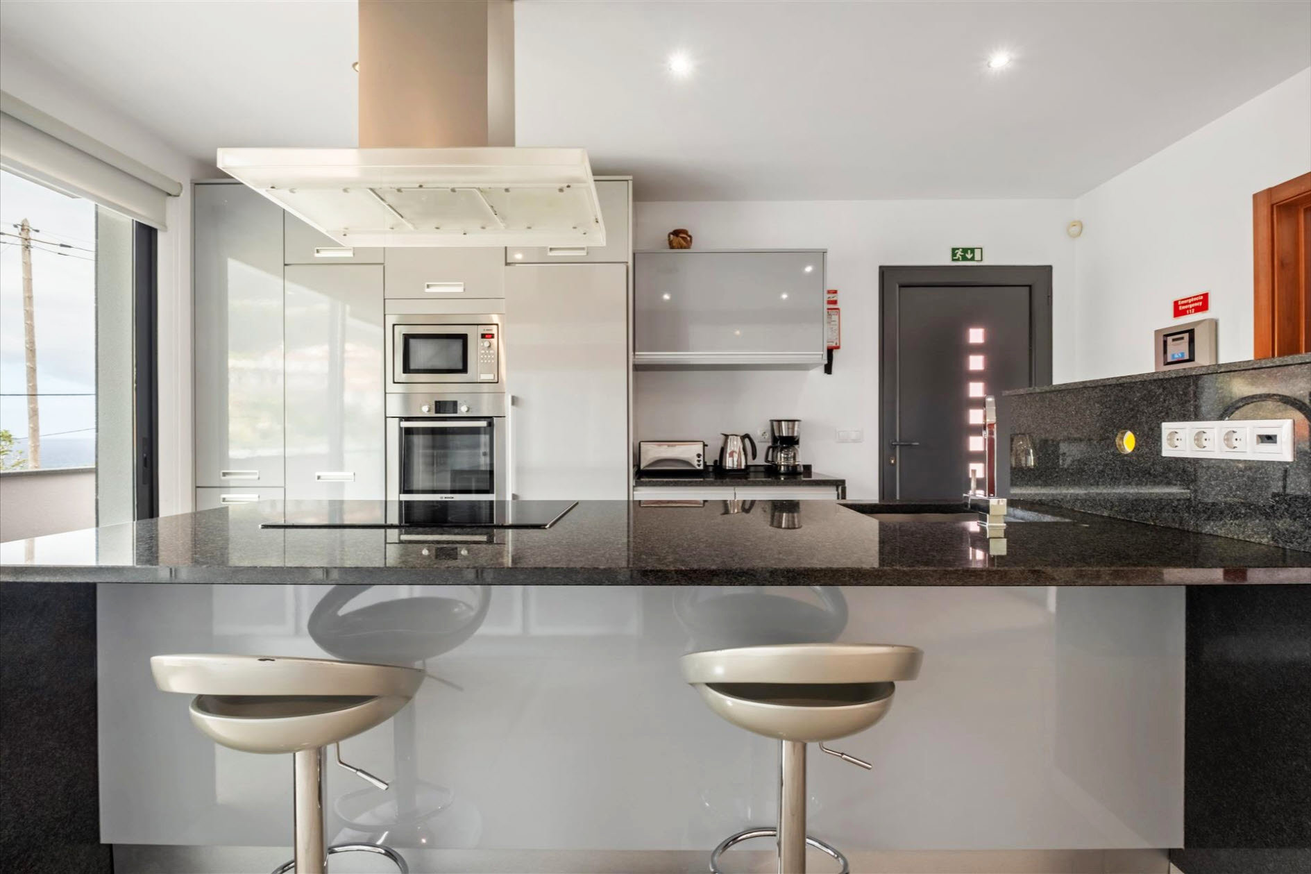 Erleben Sie puren Komfort und atemberaubende Natur in dieser charmanten Villa mit drei Schlafzimmern im ruhigen Ponta Delgada, im Norden Madeiras. Diese moderne Villa bietet eine perfekte Mischung aus Funktionalität und Stil. Im Erdgeschoss erwartet Sie eine großzügige Garage, ein Abstellraum sowie ein vielseitiger Raum, der sich ideal als Heimkino oder Fitnessraum eignet. Ein moderner Aufzug für bis zu sechs Personen verbindet alle Etagen des Hauses, was zusätzlichen Komfort bietet. Die mittlere Etage ist der Wohnbereich, der mit einem offenen Küchenkonzept, einem Essbereich und einem gemütlichen Wohnzimmer beeindruckt.