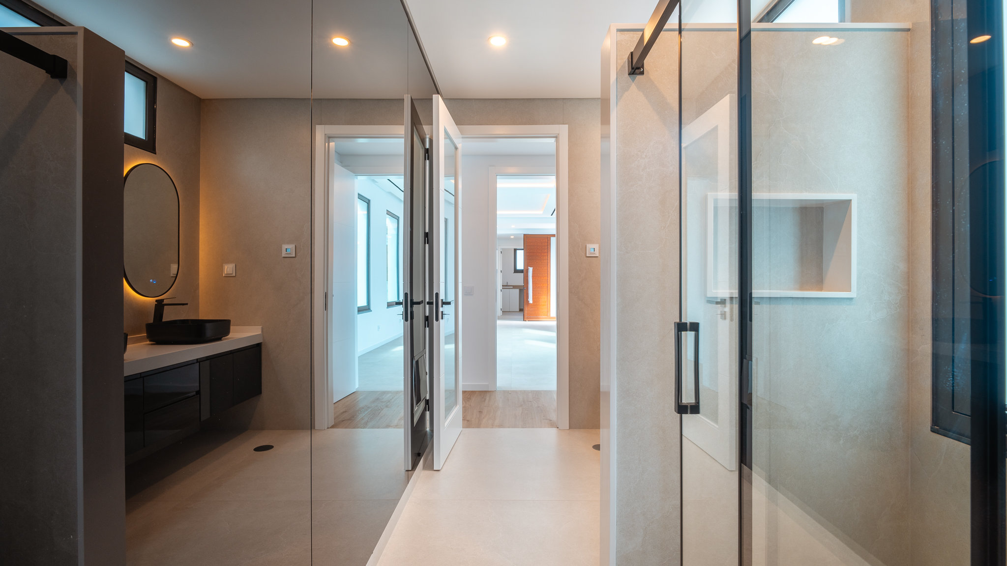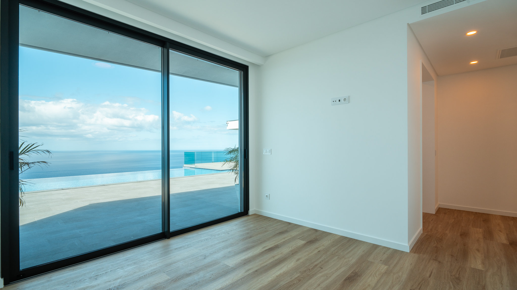 Die Planungen sehen Wohnflächen von 180 m² vor. Auf einer Ebene entsteht ein großzügiger, offener Wohn- Essbereich, eine Einbauküche mit Markengeräten sowie drei Schlafzimmer, jeweils mit einem Bad en-Suite und eigener Ankleide. Alle offen gestalteten und hellen Wohn- und Schlafräume haben nicht nur einen fantastischen Blick auf das Meer, sondern auch direkten Zugang zum Außenbereich, einer Terrasse mit Garten und großem beheizten Swimmingpool. Der Außenbereich wird mit mediterranen Pflanzen angelegt und bietet jeden Abend aufs Neue die Möglichkeit, romantische Sonnenuntergänge zu genießen.