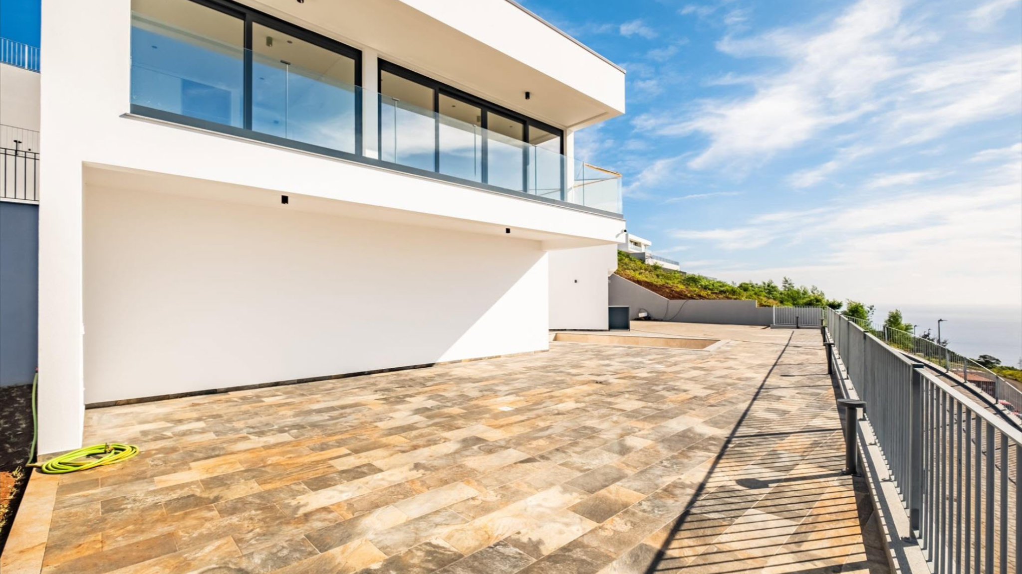 Diese freistehende V-förmige T3-Villa, gelegen in der beschaulichen Gemeinde Santa Cruz, steht als Symbol für Privatheit und Ruhe. Sie genießt eine unverbaubare Panoramaaussicht, die vom Sonnenaufgang über Santa Cruz und Gaula bis hin zum Atlantik reicht. Auf einem Grundstück von 1088 Quadratmetern mit einer bebauten Fläche von 299 Quadratmetern errichtet, verfügt die Villa über drei Schlafzimmer. Dazu kommen insgesamt vier Bäder, welche zusätzlich großzügigen Komfort bieten. Das gerade in Bau befindliche Haus wird mit hochwertigen Materialien ausgestattet. Es bietet einen großzügigen Außenbereich mit Pool, Grillstelle und einen großen Garten.