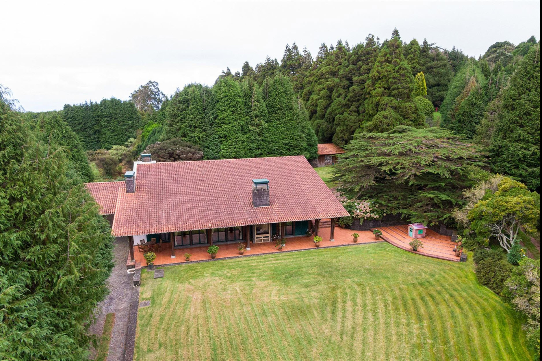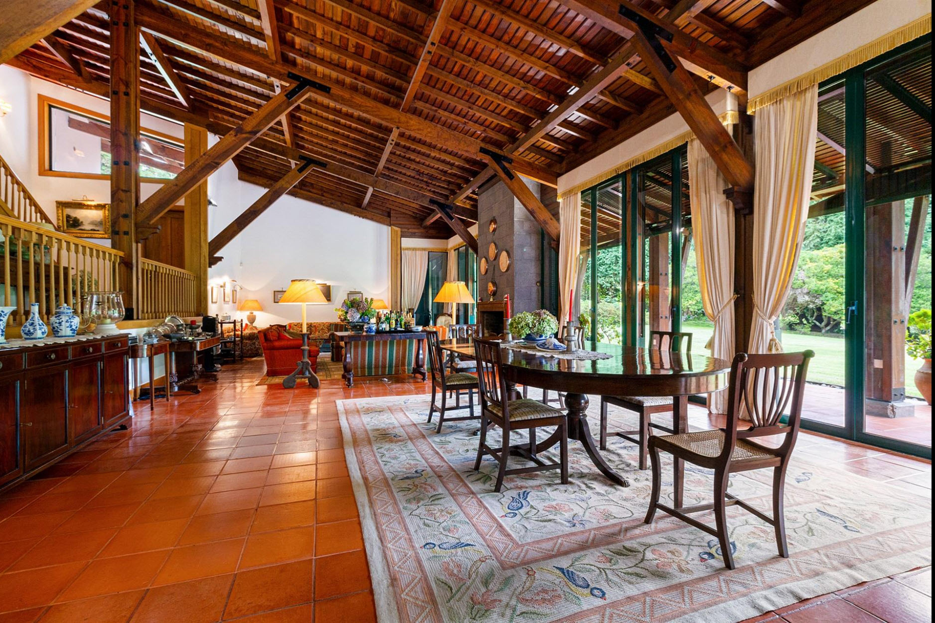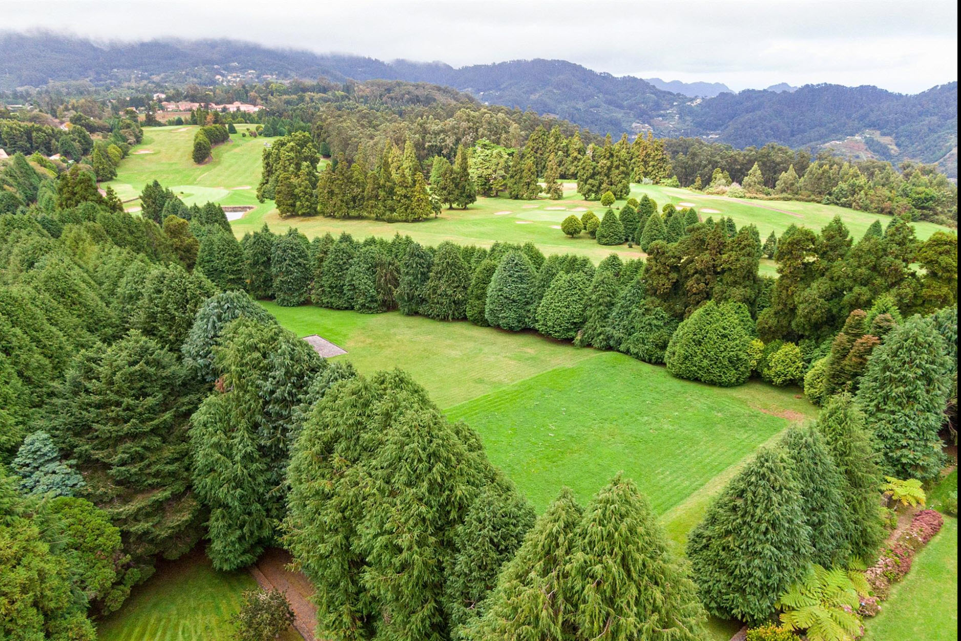 Diese außergewöhnliche Villa liegt auf einem beeindruckenden Grundstück von ca. 11.000 m² und grenzt direkt an den renommierten Santo da Serra Golf Club. Nur sechs Minuten vom Flughafen entfernt, bietet dieses Anwesen eine perfekte Kombination aus Privatsphäre, Natur und gehobenem Wohnkomfort.Das Haus erstreckt sich über zwei Etagen: Im Erdgeschoss befinden sich eine einladende Eingangshalle, eine voll ausgestattete Küche, ein Gäste-WC, eine Waschküche sowie ein großzügiger Wohn- und Essbereich mit Kamin und einer eleganten Basaltsteinwand. Die obere Etage beherbergt vier Schlafzimmer, von denen zwei über ein eigenes Bad verfügen, sowie ein weiteres Badezimmer für die übrigen Zimmer.