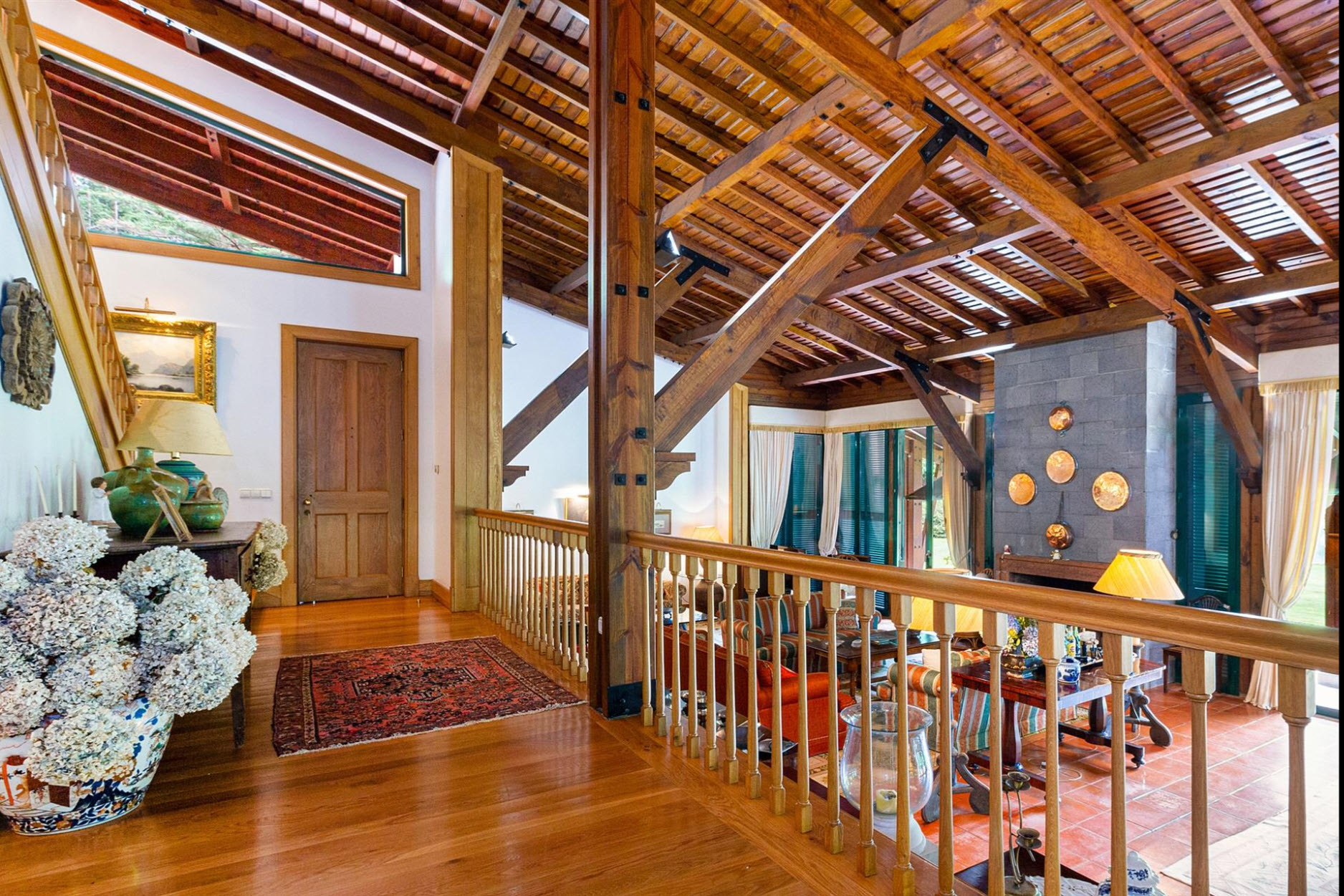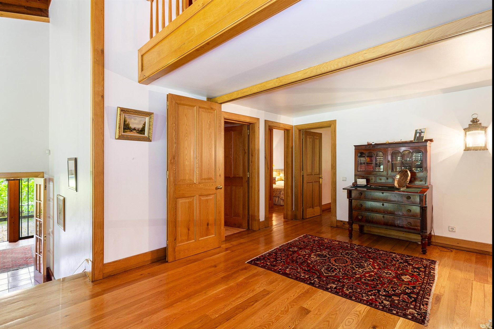 Ein heller, geräumiger Flur mit direktem Zugang zum Außenbereich sorgt für ein offenes Wohngefühl. Zusätzlich gibt es eine charmante Mezzanine mit zwei weiteren Schlafzimmern, einem Arbeitsbereich und einem zusätzlichen Schlafzimmer mit Dampfbad und Dusche. Der Außenbereich beeindruckt mit weitläufigen Rasenflächen, altem Baumbestand und gepflegten Sträuchern. Eine gemütliche Grillzone und ein charmantes Steinhaus runden das Anwesen ab. Dank Fußbodenheizung in Wohn- und Schlafräumen bietet die Villa ganzjährig ein angenehmes Wohnklima. Ob als luxuriöser Rückzugsort oder als Investition mit touristischem Potenzial – dieses Anwesen vereint Exklusivität, Komfort und eine erstklassige Lage.