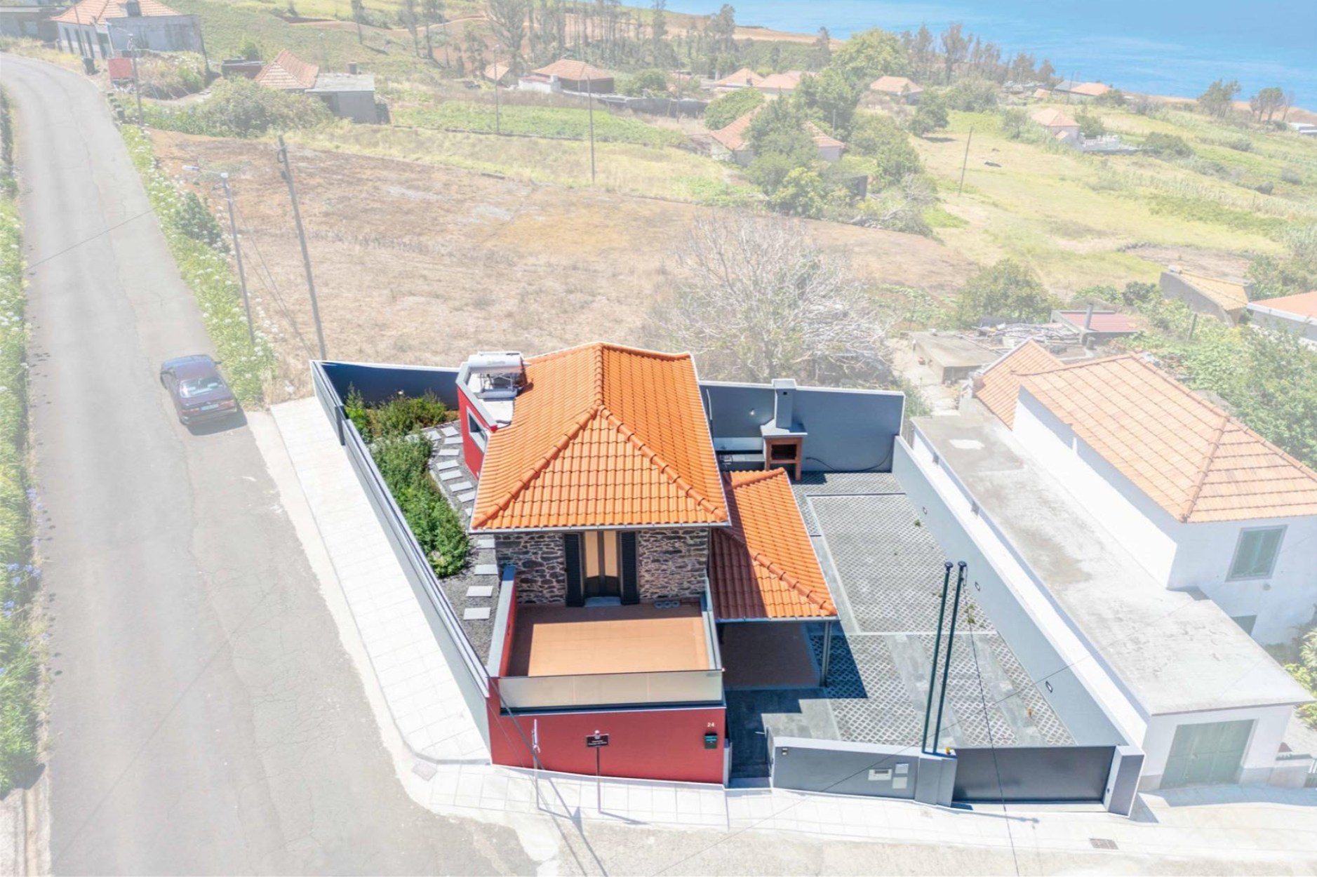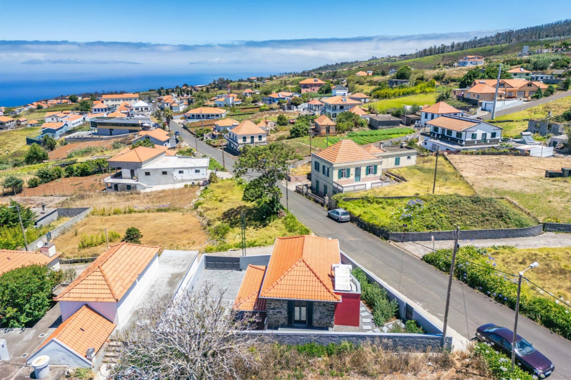 Inmitten der idyllischen Landschaft von Ponta do Pargo an Madeiras Westküste erwartet Sie diese charmante Villa – ein perfekter Rückzugsort für Naturliebhaber und Sportbegeisterte. Die Umgebung besticht durch unberührte Natur, atemberaubende Ausblicke und den geplanten Golfplatz, der die Region bald bereichern wird. Beim Betreten des Hauses empfängt Sie ein großzügiger Wohnbereich, der Gemütlichkeit und Komfort vereint. Angrenzend daran befindet sich eine stilvolle Küche, die traditionelle und moderne Elemente harmonisch verbindet.
