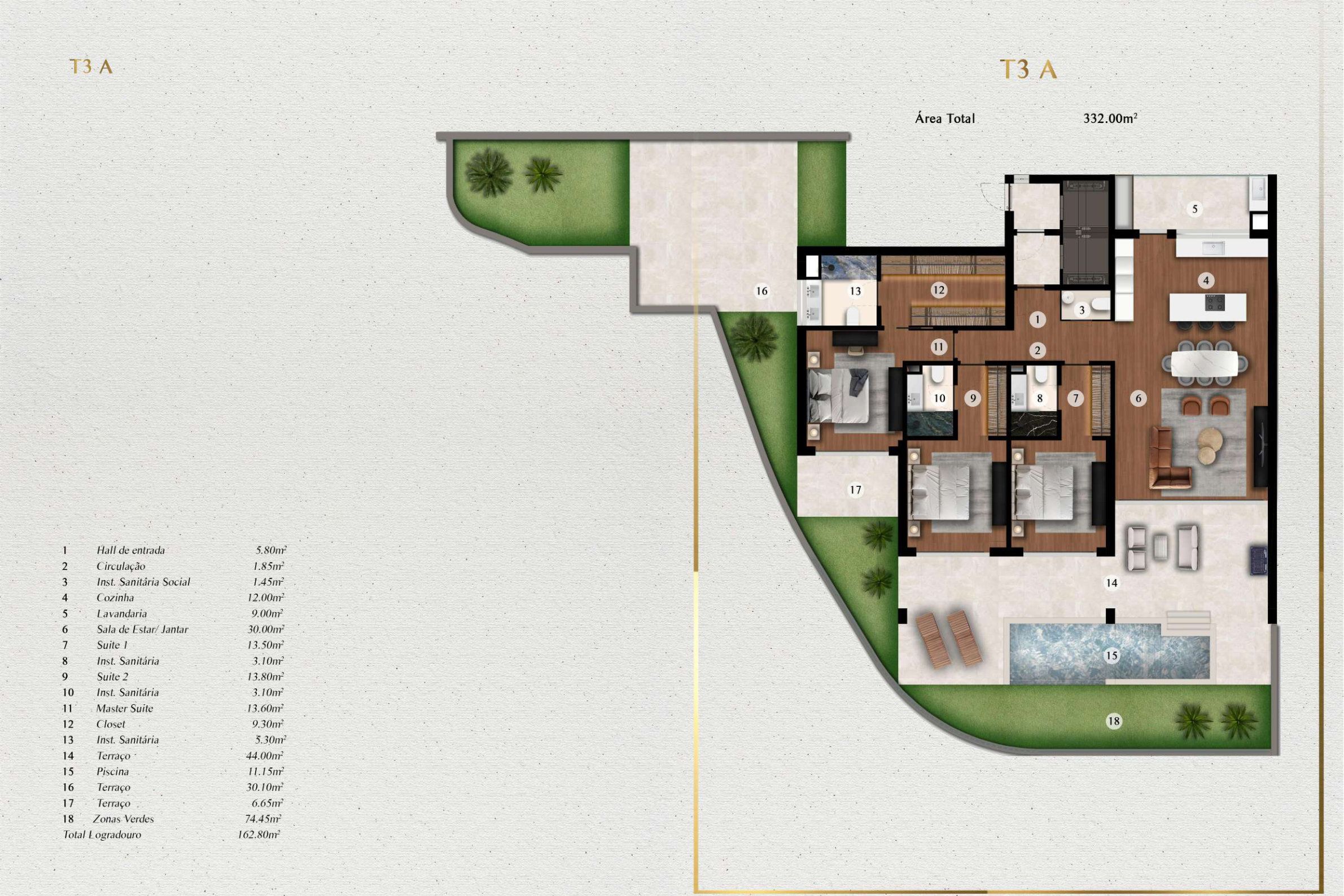 Entdecken Sie die seltene Gelegenheit, in der prestigeträchtigen Alfa-Wohnanlage zu leben, gelegen in der idyllischen Gemeinde Virtudes, São Martinho, Madeira. Diese exquisite Wohnung auf der sechsten und obersten Etage bietet einen unverbaubaren Blick auf das Meer und das beeindruckende Bergpanorama des Amphitheaters von Funchal – der perfekte Rückzugsort für anspruchsvolle Käufer, die Komfort und Raffinesse suchen. Mit einer großzügigen Wohnfläche von 359 m² und einer Gesamtbaufläche von 409 m² bietet die Wohnung drei geräumige Suiten, vier elegante Bäder und einladende Außenbereiche. Besonders hervorzuheben sind der 61 m² große Balkon sowie die beeindruckende 176 m² große Terrasse – ideal, um die atemberaubenden Aussichten in Ruhe zu genießen.
