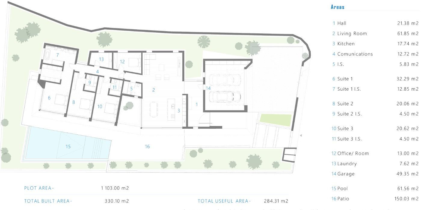 Eine Vorinstallation für Alarm- und Videoüberwachungssysteme ist ebenfalls vorhanden. Höchste Qualität der Materialien und Ausführungen prägen das Design dieses einzigartigen Hauses. Ein Highlight ist die geräumige Garage, die Platz für drei Autos bietet. Der Außenbereich zeichnet sich durch einen wunderschönen Garten und einen blauen Pool aus, die eine perfekte Harmonie mit der Umgebung schaffen. Die gesamte Immobilie profitiert von einer ausgezeichneten Sonneneinstrahlung und bietet einen atemberaubenden Meerblick. Käufer haben die Möglichkeit, während der Bauphase die Materialien für die Ausführungen dieser prächtigen und einzigartigen Villa selbst auszuwählen. Zögern Sie nicht, uns für weitere Informationen oder zur Vereinbarung eines Besichtigungstermins zu kontaktieren.