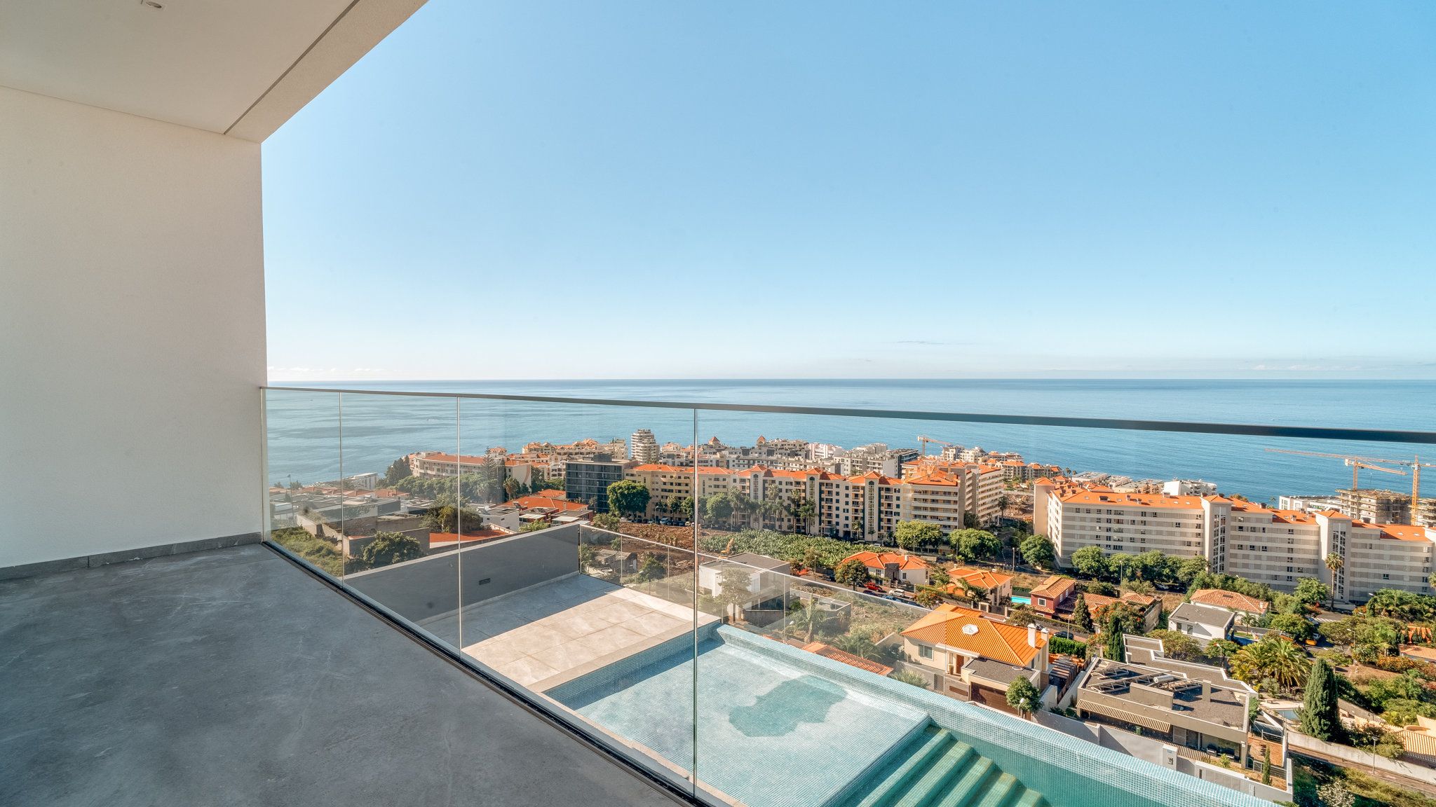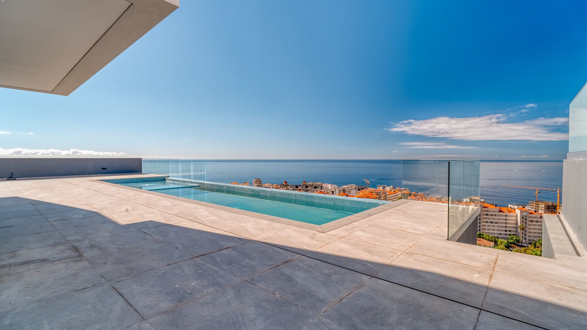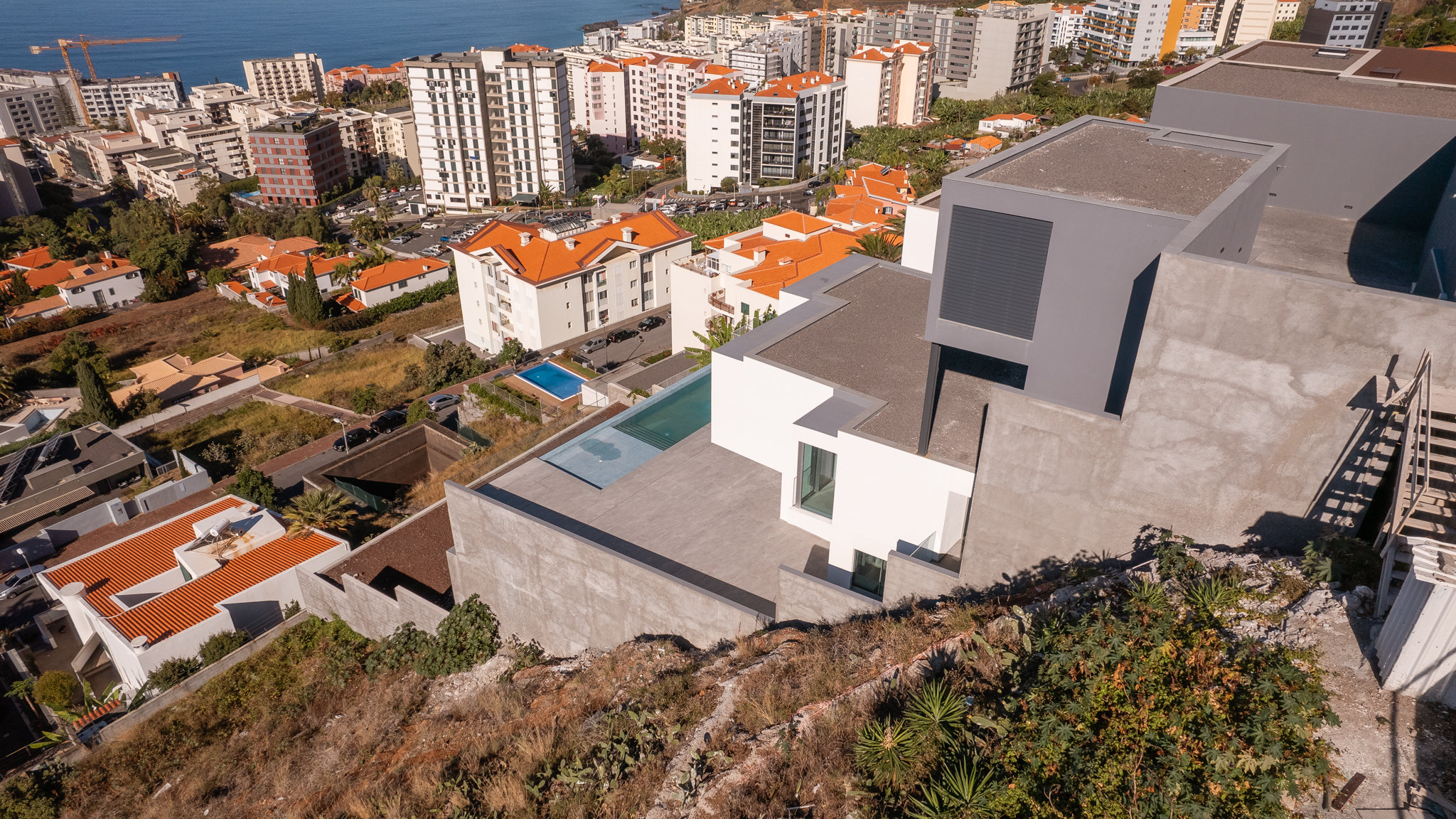 The property will be equipped to the highest standards. Only branded appliances are installed in the kitchen. The rooms are air-conditioned. The garage has space for five to six vehicles. The outdoor area, accessible from the living area through floor-to-ceiling sliding windows, invites you to enjoy the Madeiran lifestyle to the full. The large infinity pool is surrounded by the garden and a terrace and offers enough space for the whole family. From all levels you have a fabulous view of the landscape and the sea. São Martinho is one of the most exclusive residential locations in the southwest of Madeira. Funchal city centre, as well as the harbour and the old town with its selection of exquisite restaurants, are only a few minutes away.