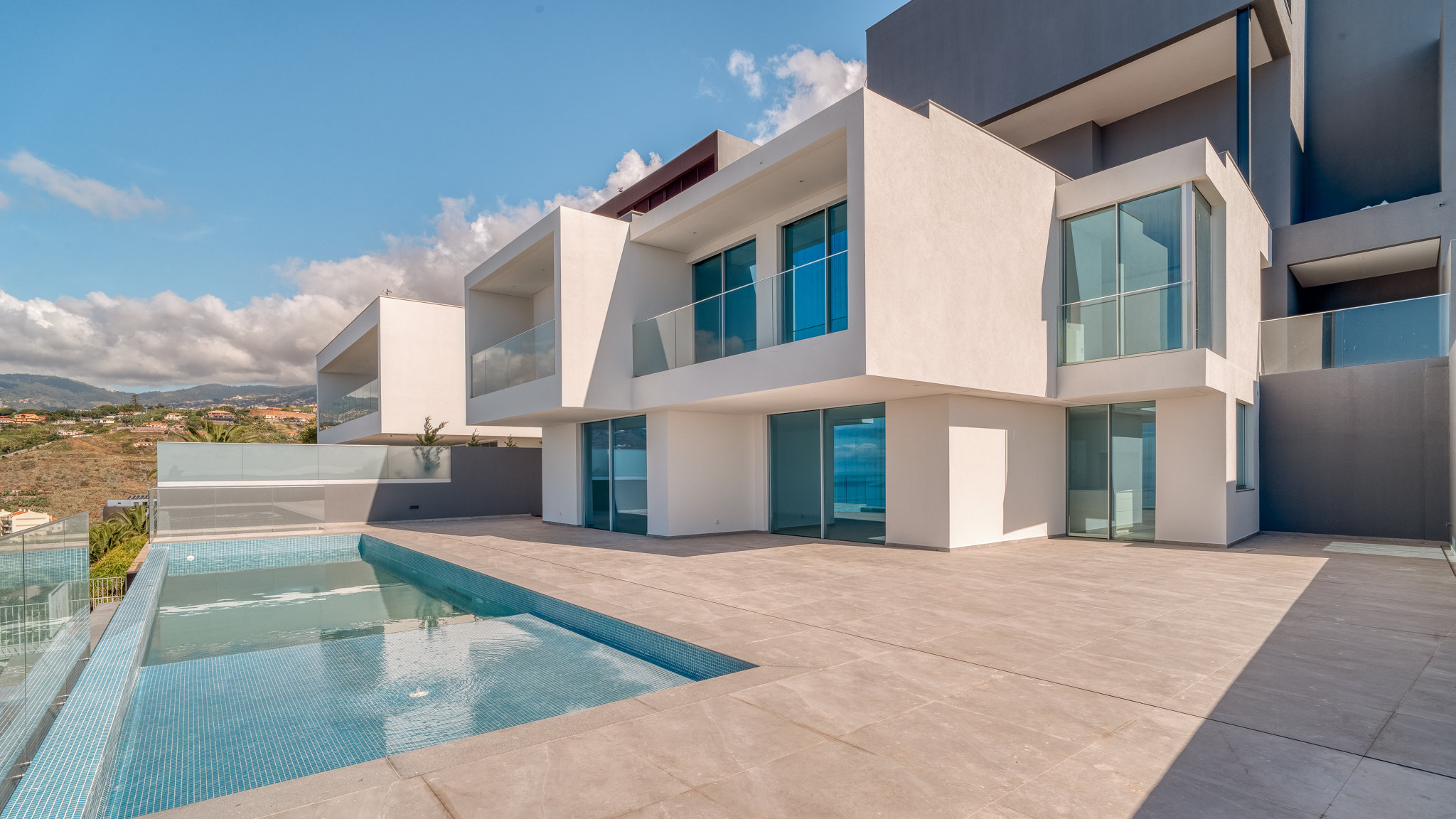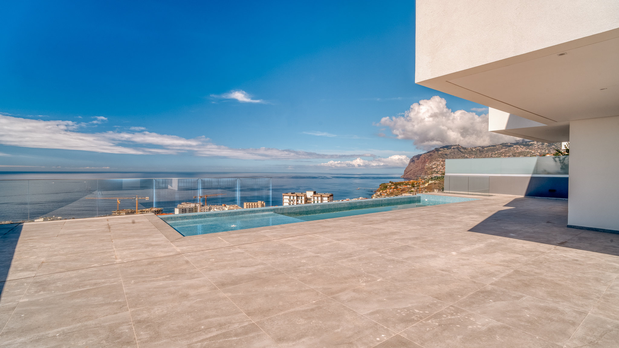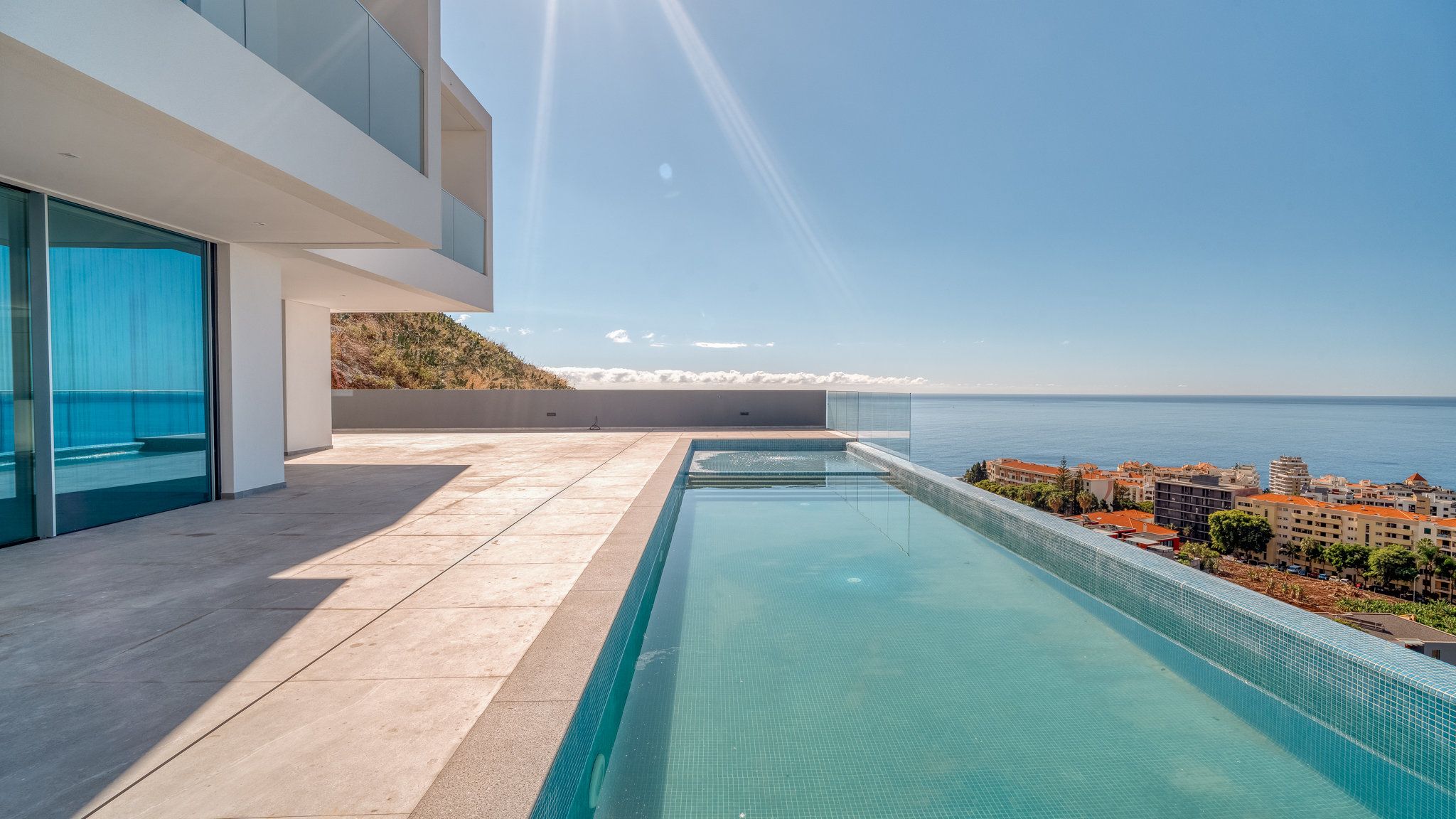 The property will be equipped to the highest standards. Only branded appliances are installed in the kitchen. The rooms are air-conditioned. The garage has space for five to six vehicles. The outdoor area, accessible from the living area through floor-to-ceiling sliding windows, invites you to enjoy the Madeiran lifestyle to the full. The large infinity pool is surrounded by the garden and a terrace and offers enough space for the whole family. From all levels you have a fabulous view of the landscape and the sea. São Martinho is one of the most exclusive residential locations in the southwest of Madeira. Funchal city centre, as well as the harbour and the old town with its selection of exquisite restaurants, are only a few minutes away.