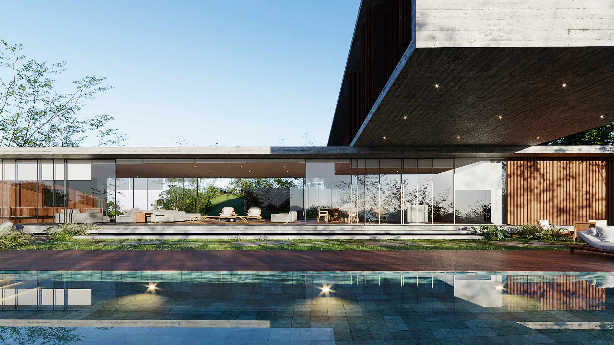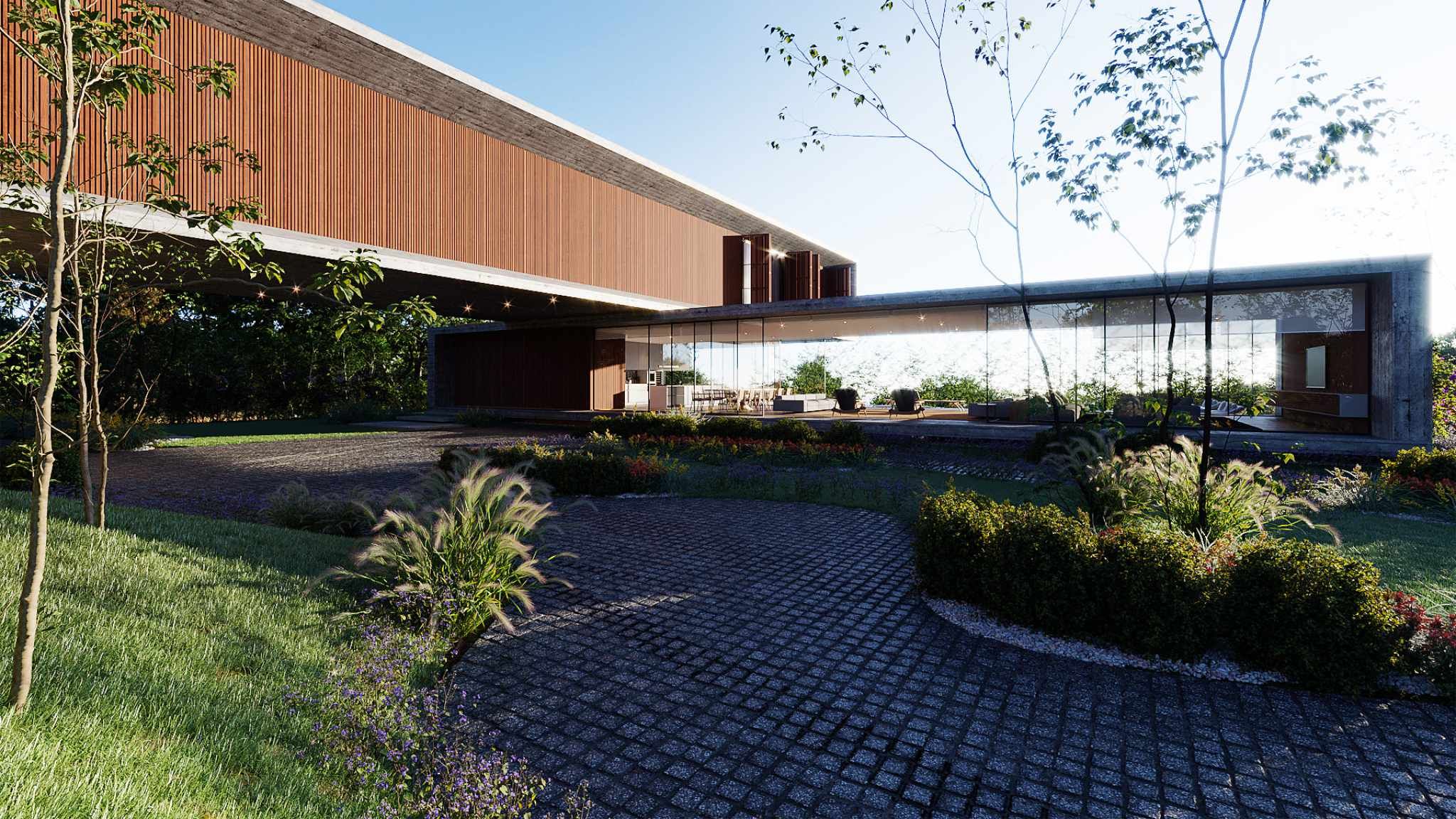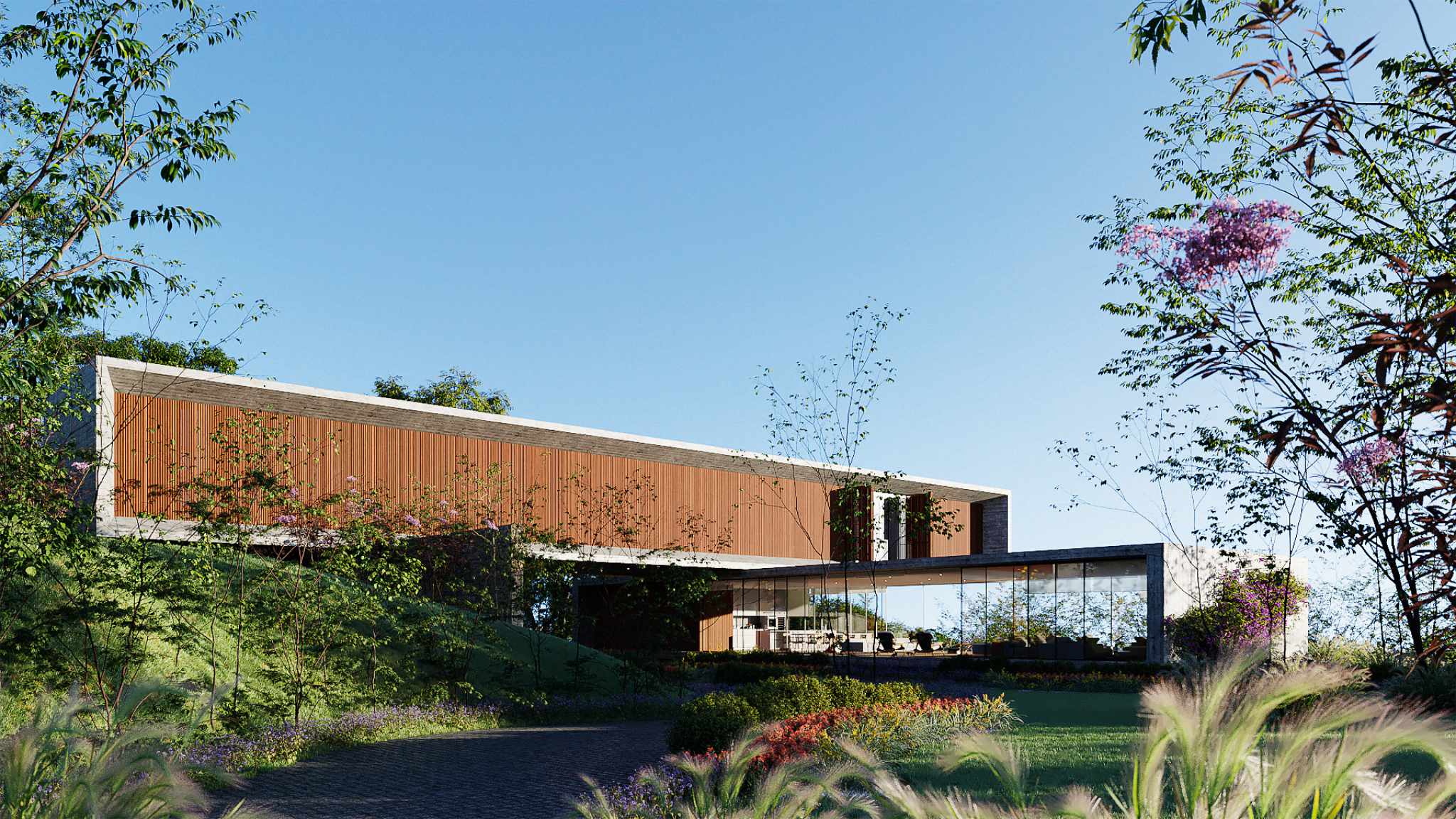 The residence redefines the boundaries of design, living and the integration of natural living spaces. It was designed for a family looking to escape the hustle and bustle of the city. It has a sculptural character and an impressive but functional design flow. The result is a geometric home that blends harmoniously with its natural surroundings while creating a purposeful and sustainable modernist spatial experience. The Residence reimagines the way we live in a home.