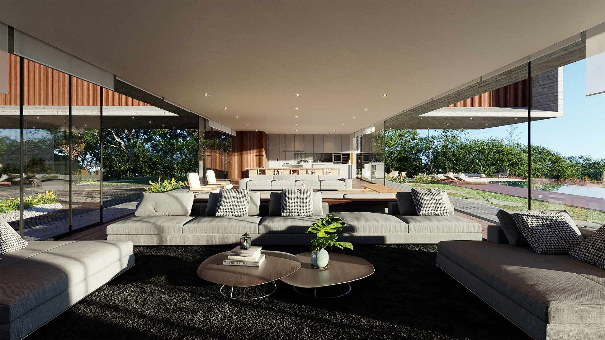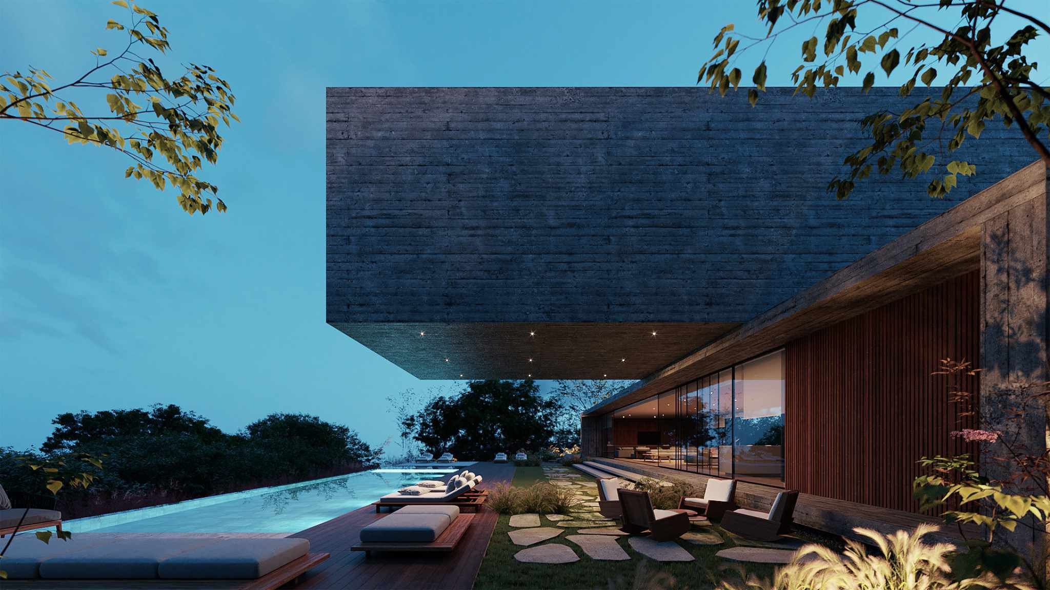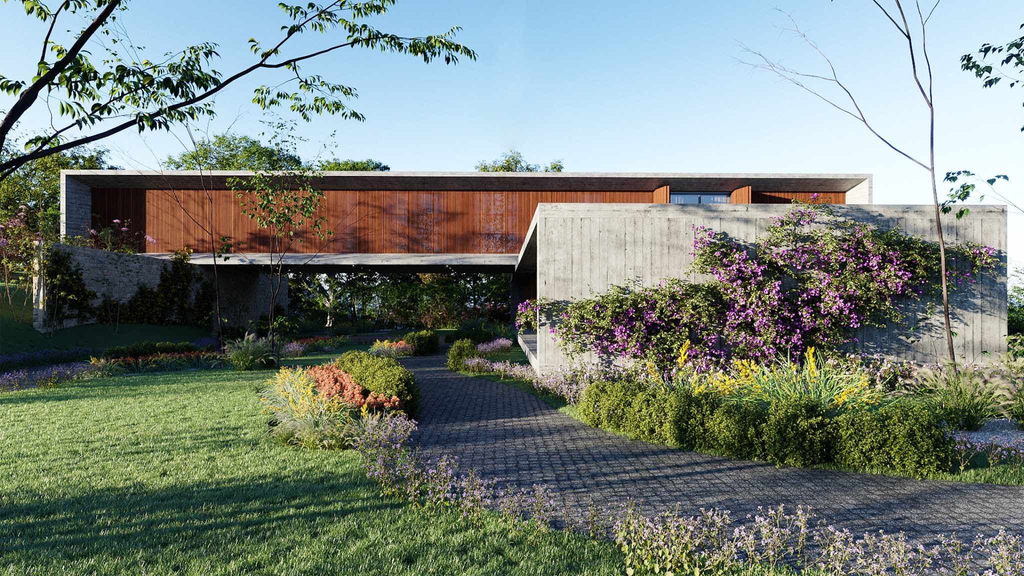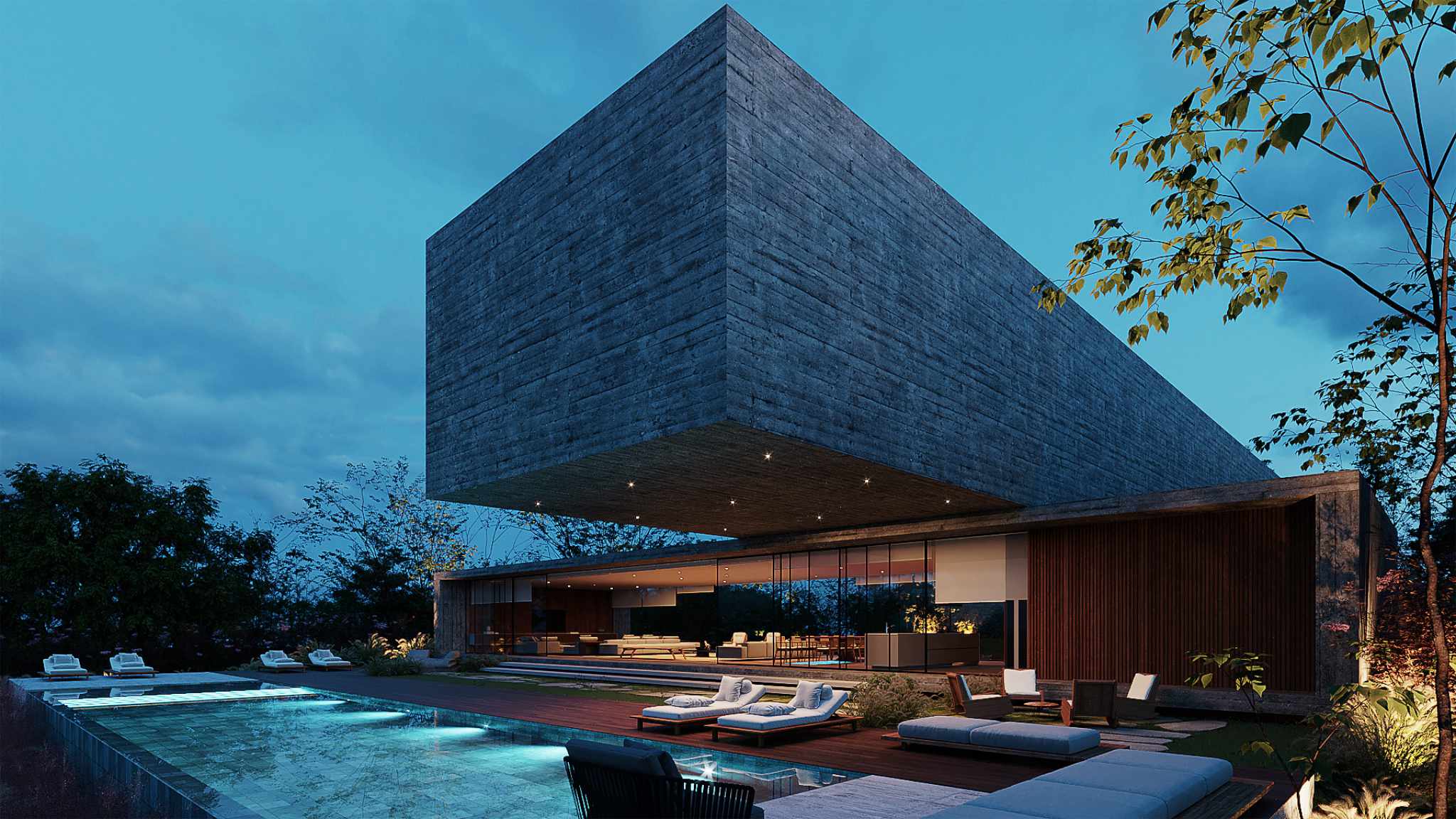 The residence redefines the boundaries of design, living and the integration of natural living spaces. It was designed for a family looking to escape the hustle and bustle of the city. It has a sculptural character and an impressive but functional design flow. The result is a geometric home that blends harmoniously with its natural surroundings while creating a purposeful and sustainable modernist spatial experience. The Residence reimagines the way we live in a home.