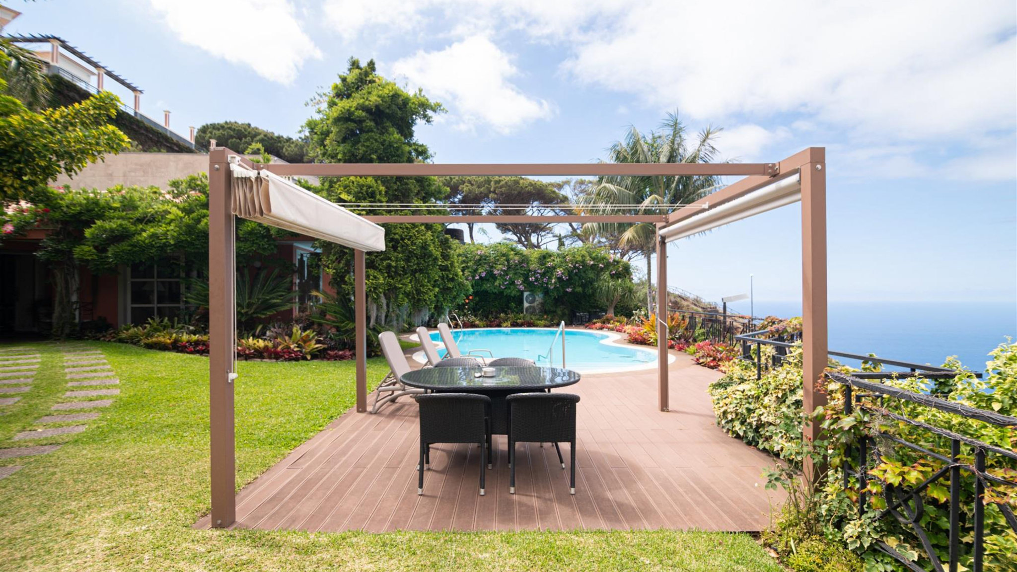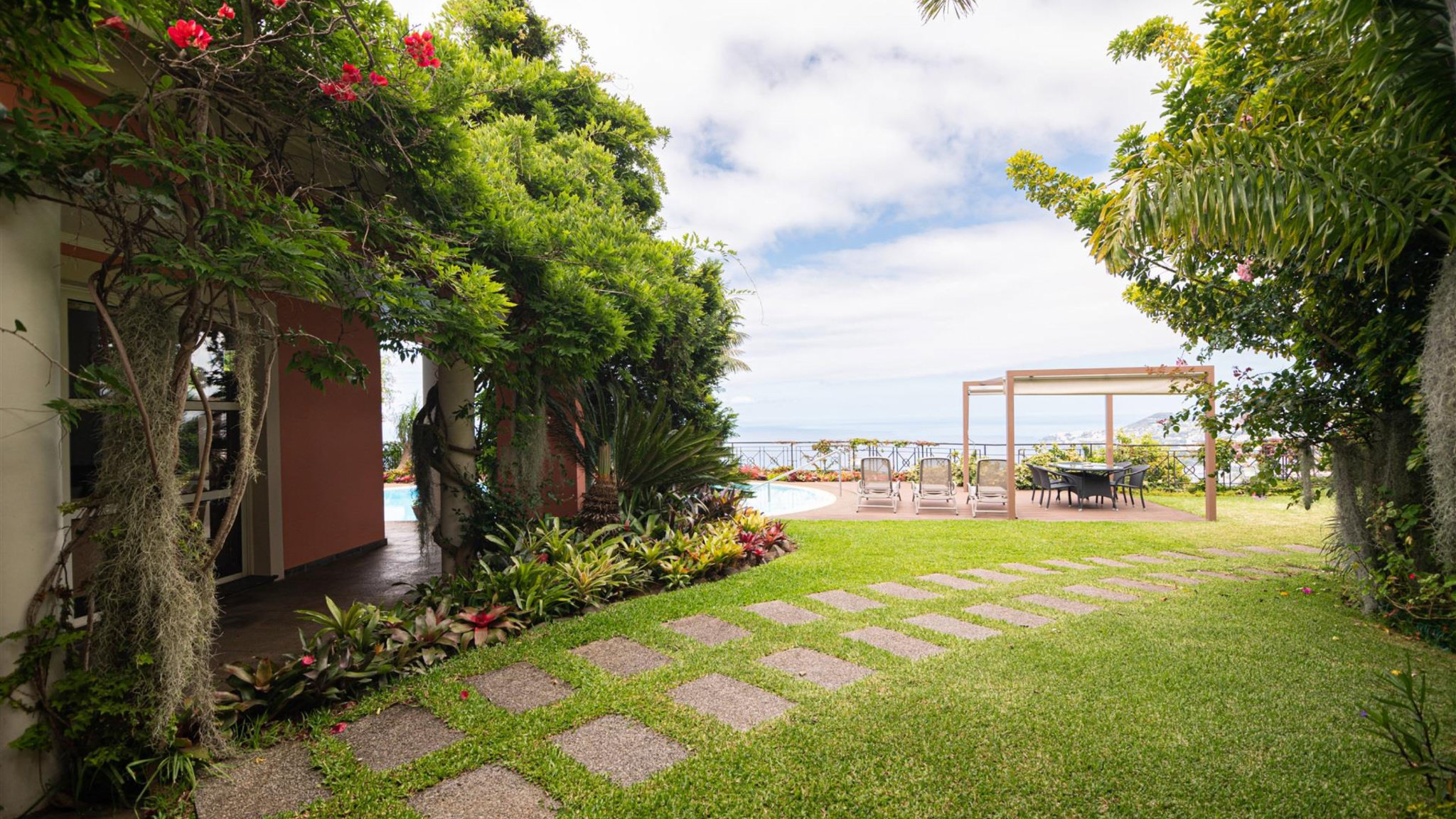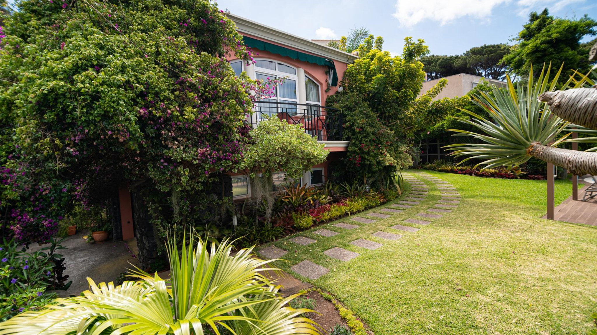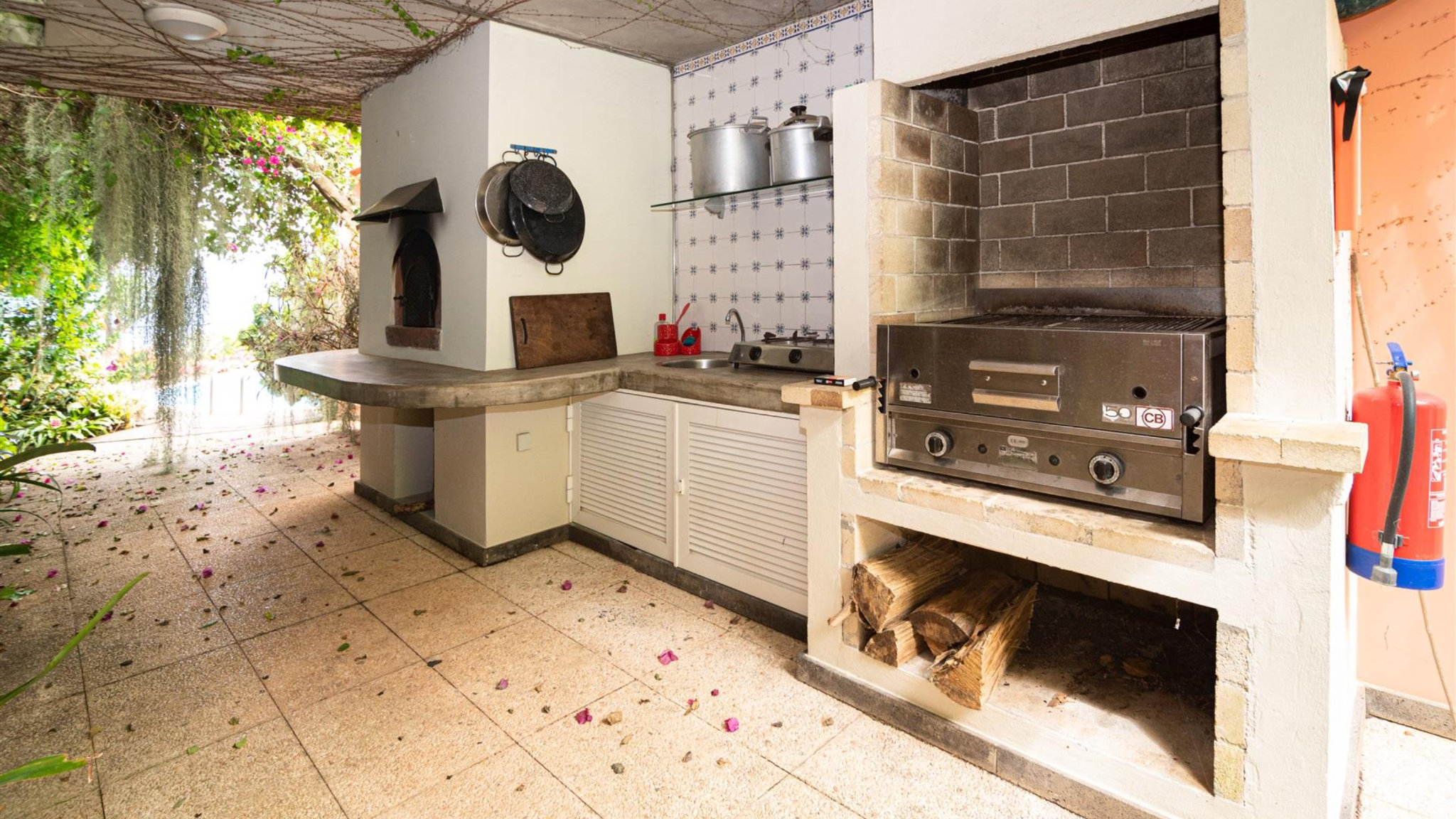 On this floor there is also a pantry, a laundry room, an office and a guest bathroom. In the private area on this floor is a small staff or guest suite with access to the garden. The sleeping area of the villa is on the upper floor, which consists of three suites with a large balcony. The highlight of the villa is the incredibly beautiful and well-kept garden area with a swimming pool and breathtaking views of the city. Here you will also find a barbecue area, a small pond, a kennel and a greenhouse surrounded by exotic plants and trees. Although the villa is located in a quiet area, it is within easy reach of various amenities. It takes about 10 minutes by car to reach the centre of Funchal.