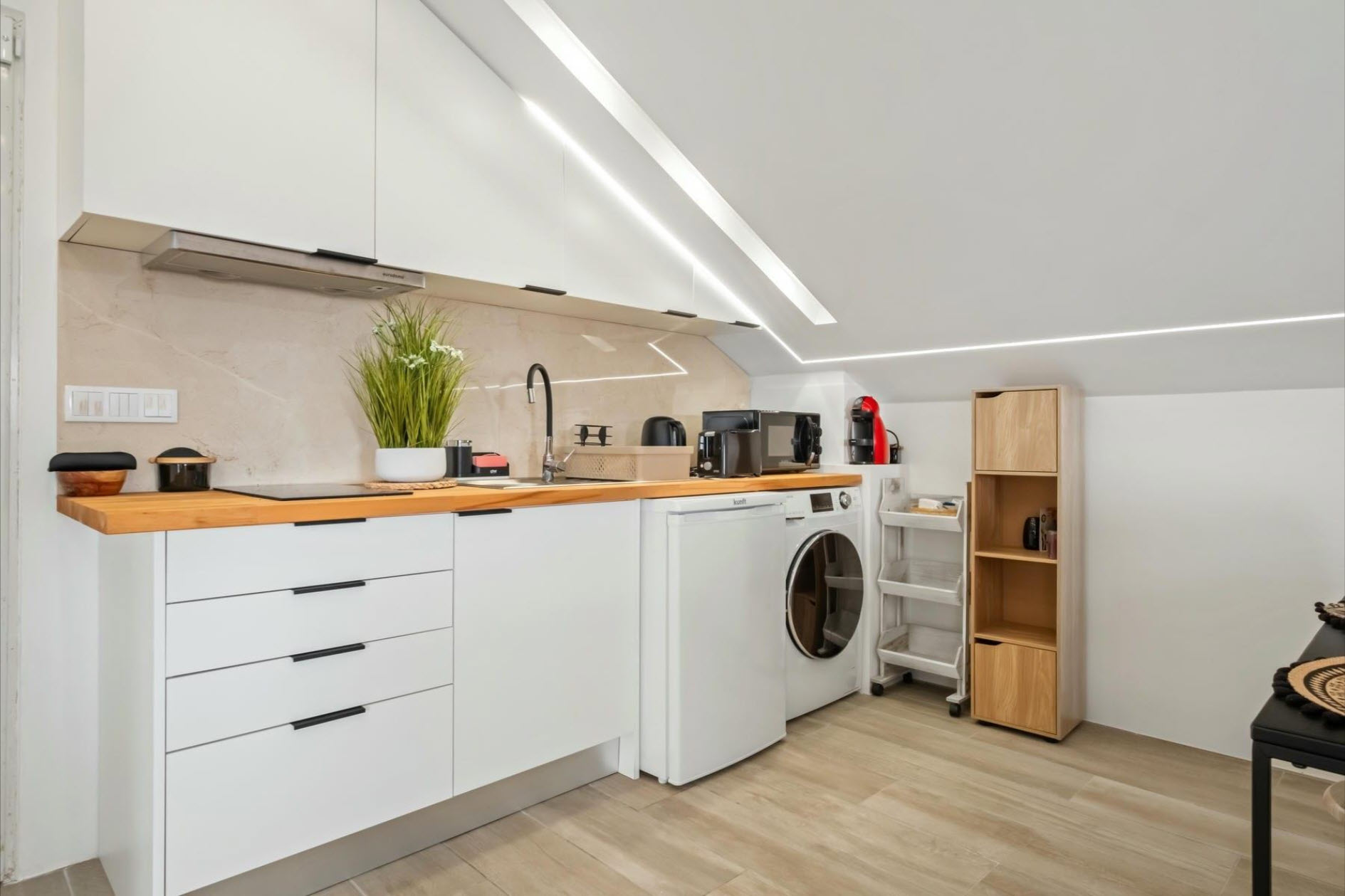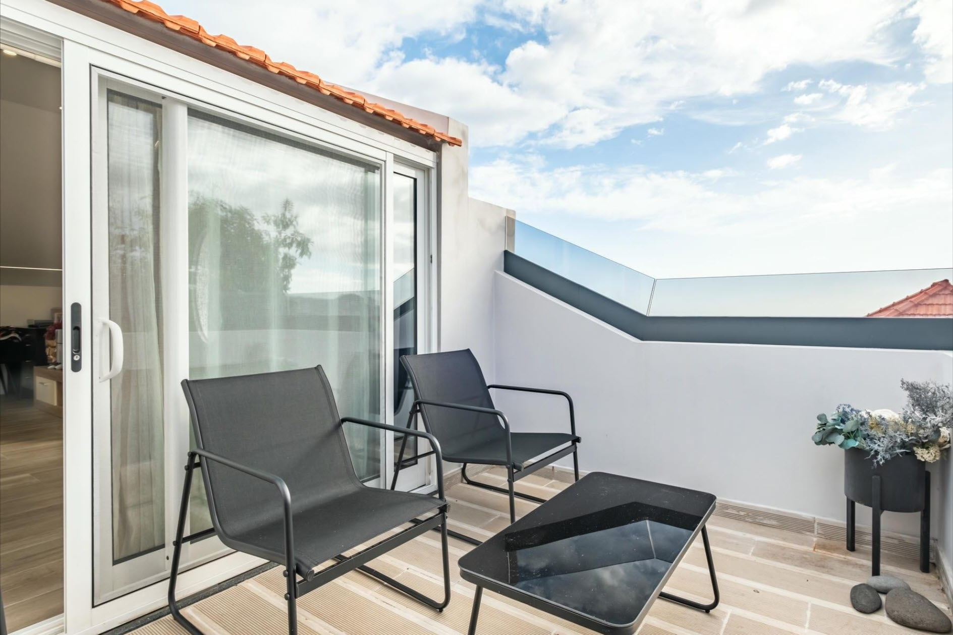Situated on a quiet, low-traffic street, the property ensures privacy, while proximity to schools, supermarkets, and public transport guarantees a high quality of life. The city center is just a 10-minute walk away. On the upper floor, the house includes a bathroom, a modern kitchen, a living room, a practical laundry room, and two bedrooms. The small garden with a barbecue area invites you to enjoy sociable evenings. The second floor features a rooftop apartment designed in a studio style, offering a unique retreat. This space includes a living/dining room, an open kitchen, a sleeping area, a small bathroom, and a rooftop terrace. Additionally, the garage provides space for two vehicles. A dream home for anyone seeking a modern and well-connected property in Madeira.