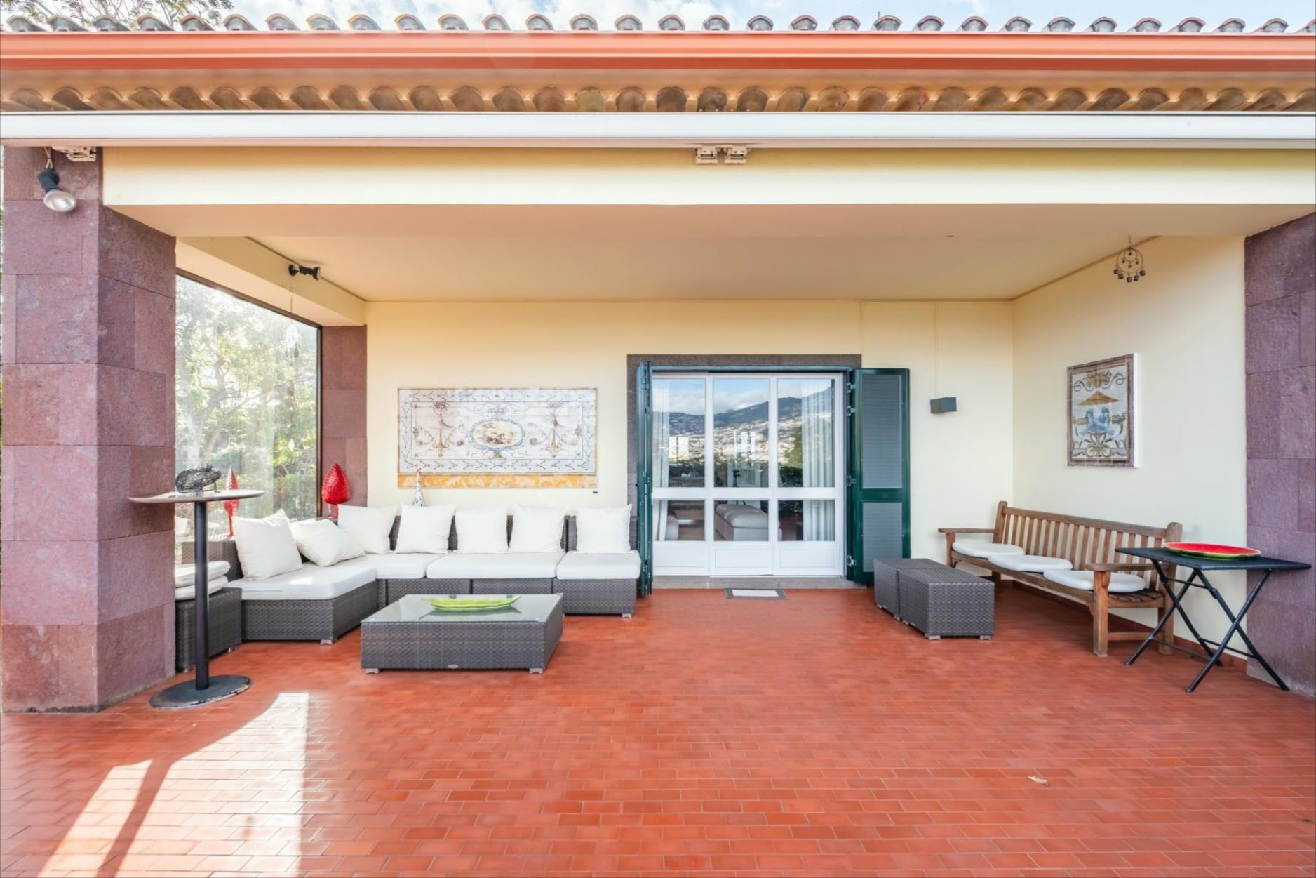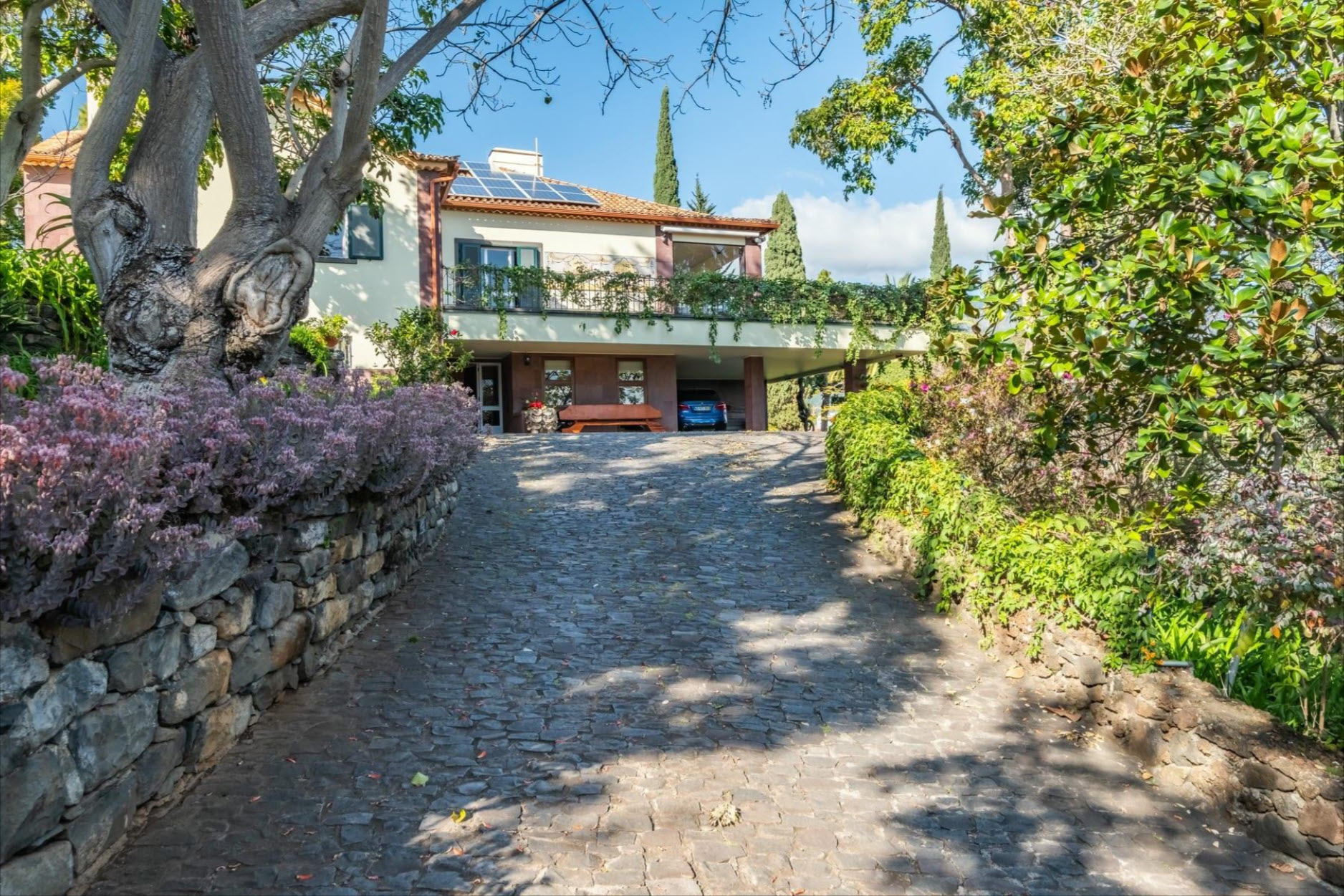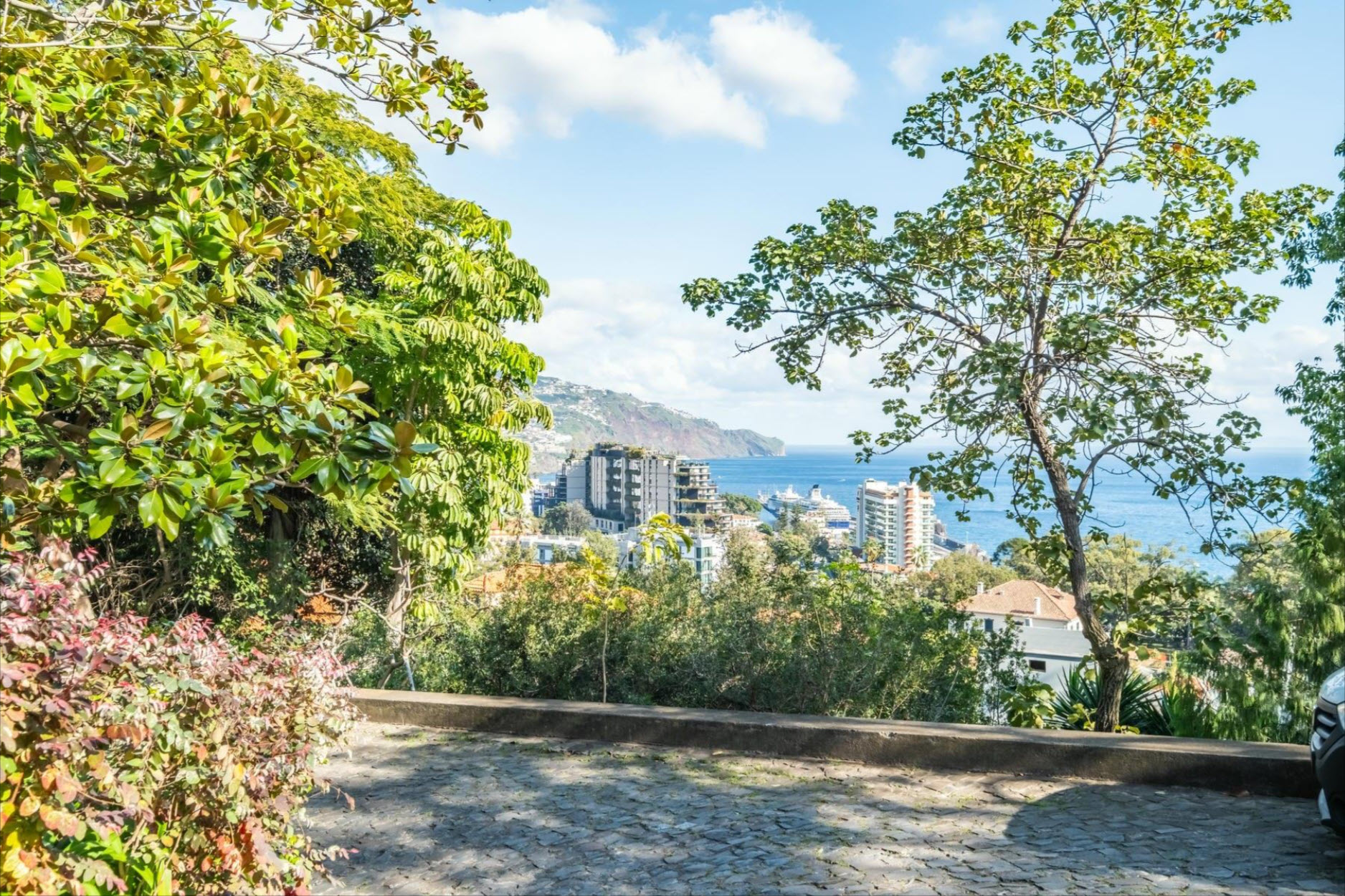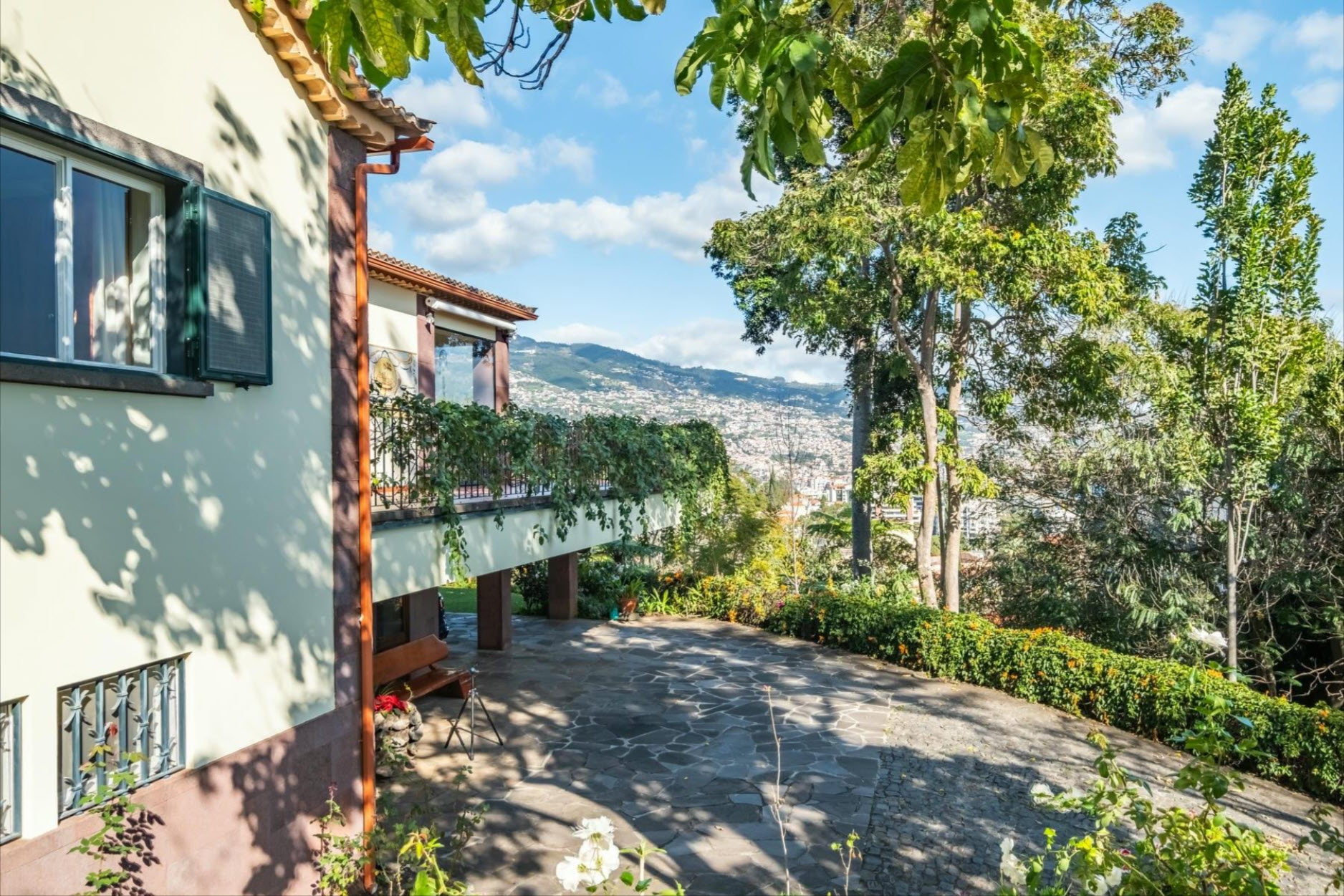 The fully equipped kitchen with a gas stove caters to culinary excellence. The park-like garden, adorned with century-old trees, a charming fountain, and a sun terrace, provides a serene retreat. From here, enjoy breathtaking views over Funchal Bay and the harbor. A rooftop photovoltaic system ensures sustainable energy, while air-conditioned bedrooms offer ultimate comfort. Set on an impressive 4,687 m² plot, this estate guarantees privacy and tranquility – a true oasis within the city. Two covered parking spaces are available. A rare opportunity to own an exceptional residence.