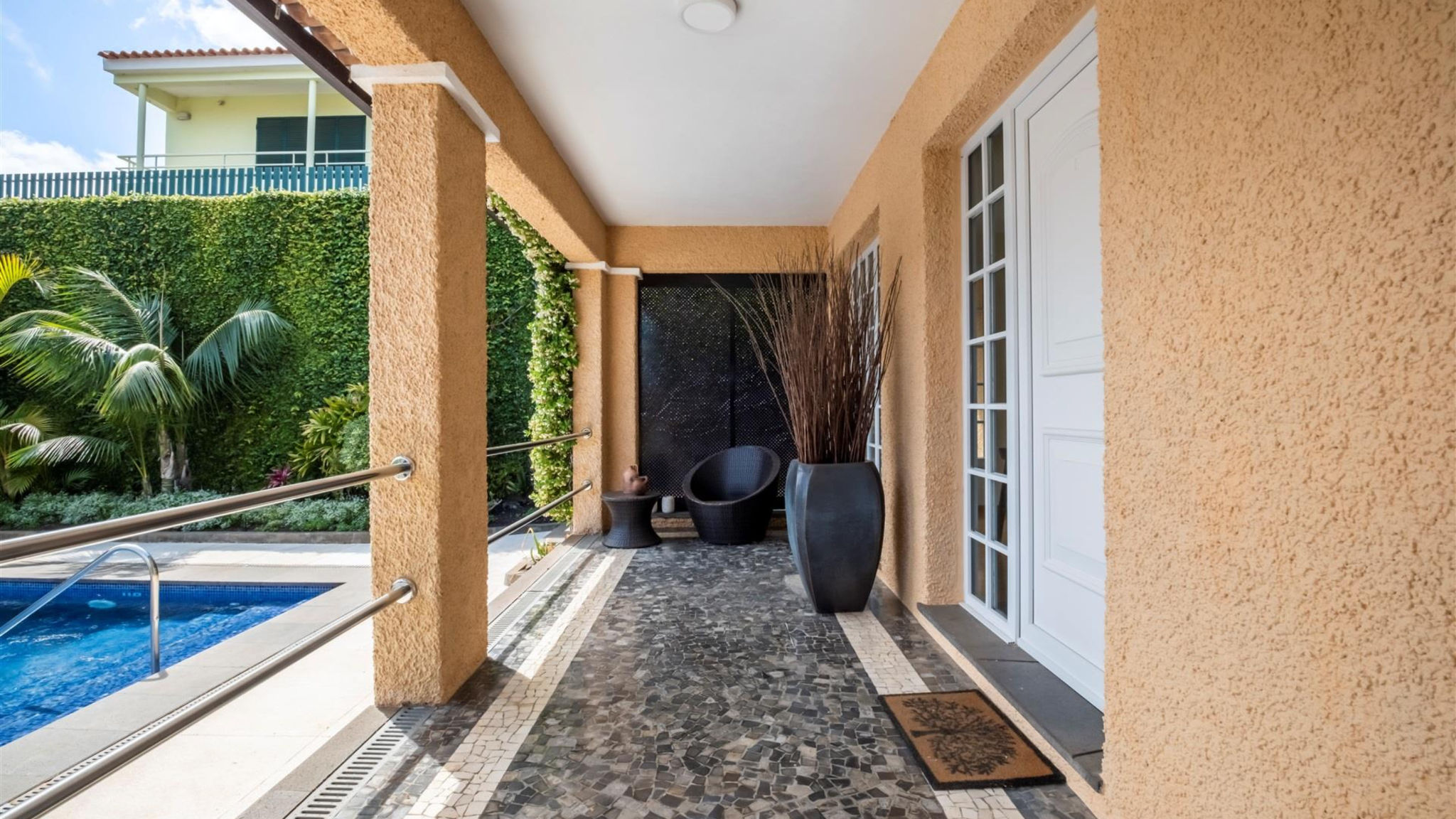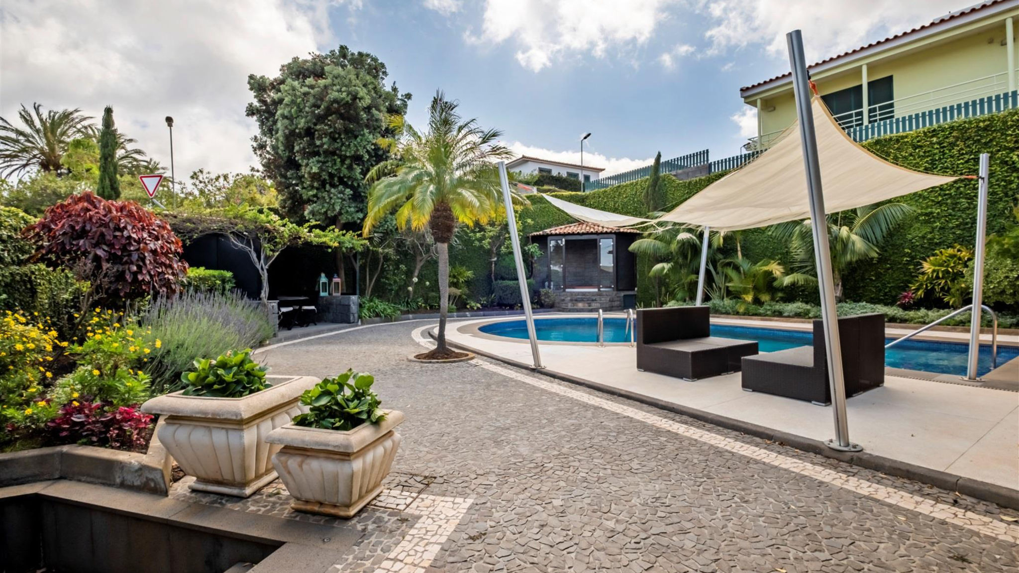 Enjoy the Madeiran lifestyle in the midst of beautiful nature in an enchanting garden setting. This oasis of tranquillity invites you to relax at any time in a dreamlike setting by the pool or jacuzzi or to enjoy a meal from the barbecue in the gazebo. The colourfully designed villa consists of three floors. The living area of the ground floor consists of a spacious living/dining room and a fully equipped very large kitchen. At the back of the house there are three bedrooms, of which the master bedroom has an en suite bathroom.