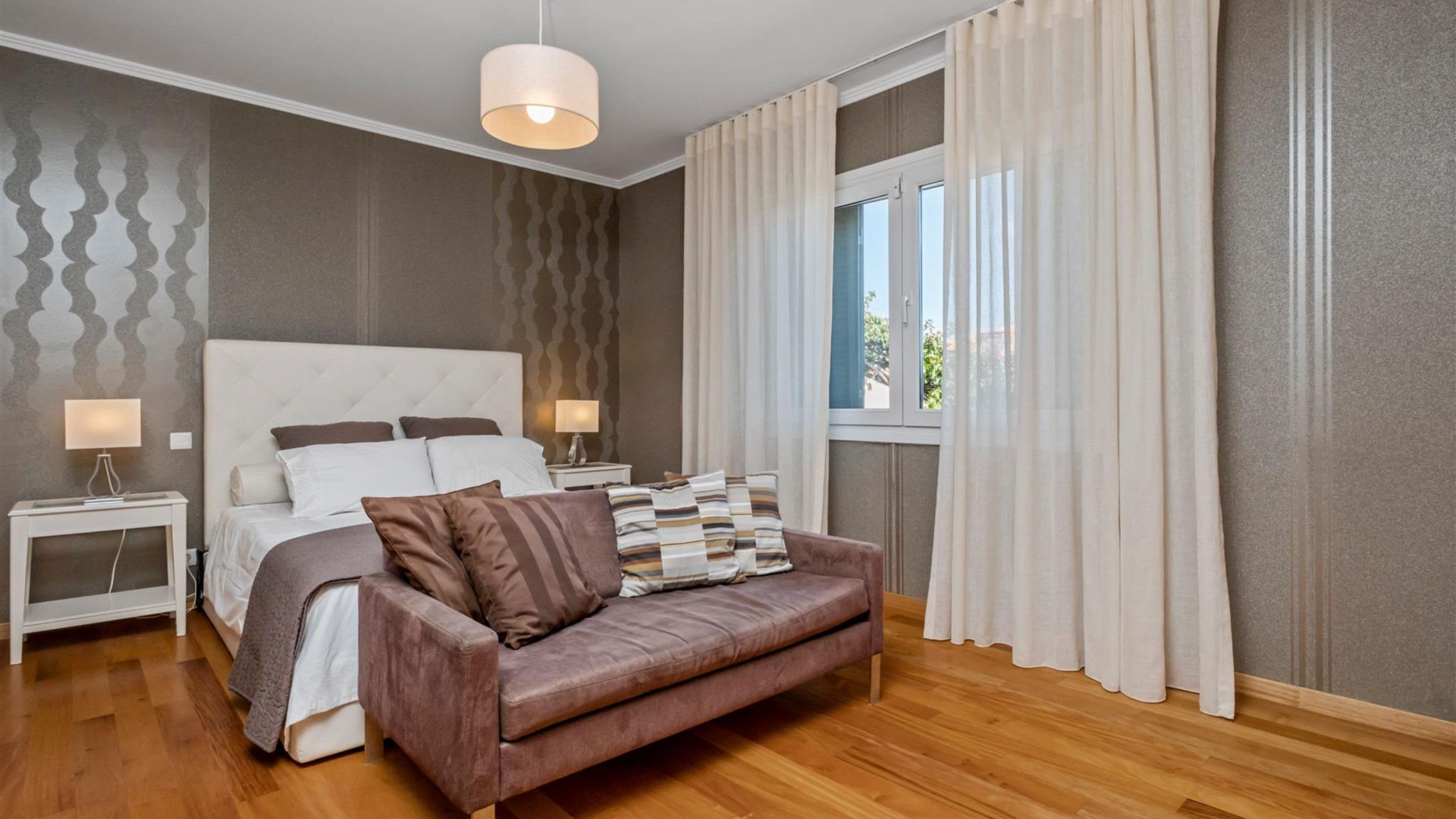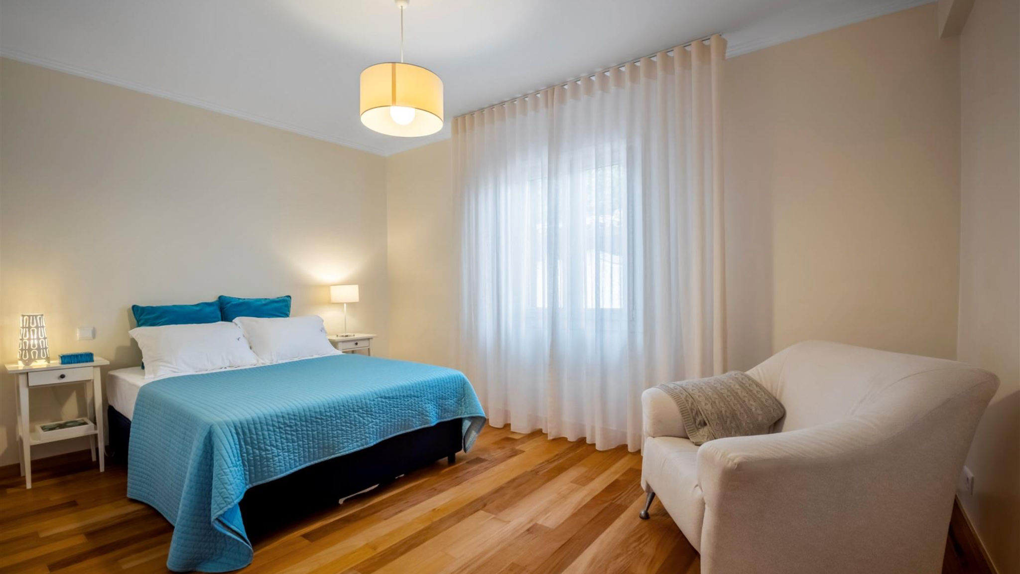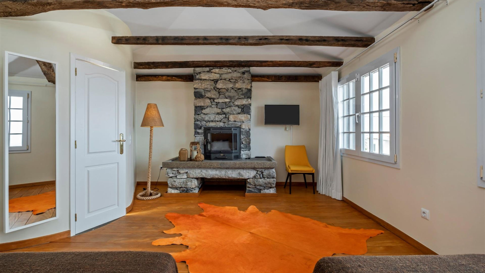 A further bathroom is shared by the other bedrooms. Upstairs, which is reached by a spiral staircase, is another bedroom with two single beds and a fireplace. In the basement there is a large recreation room, which can be used as a gym or also as a party cellar. In addition, the utility room is located here. The basement is directly connected to the garage, which offers space for two vehicles. The central location allows to reach the airport as well as the centre of Funchal by car in only ten minutes. The house offers a relaxed lifestyle, ideal for those who appreciate family life and leisure with friends and family.