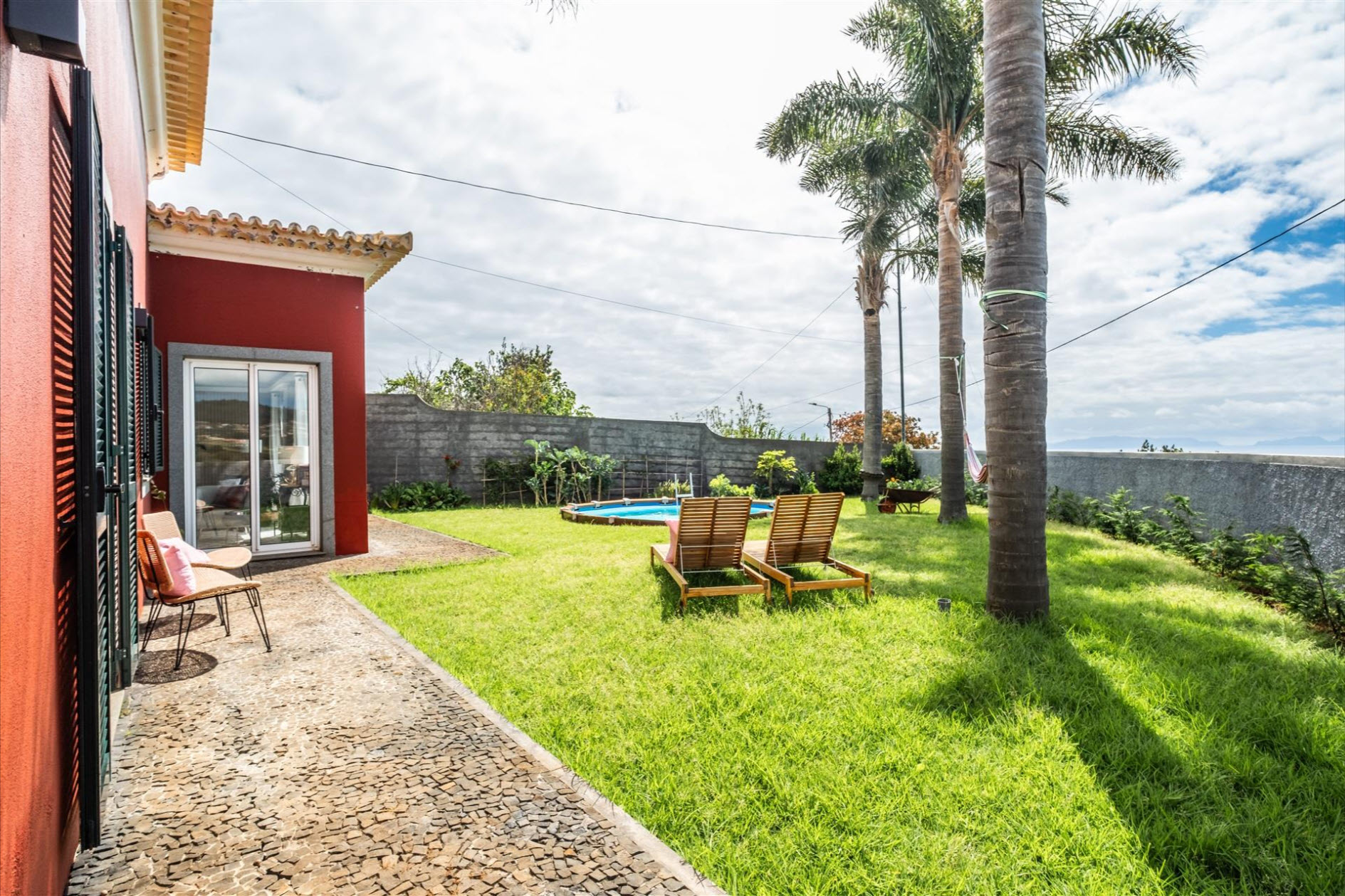 The master suite impresses with a large walk-in closet, behind which lies a spacious private bathroom with a whirlpool bathtub, filled with natural light. The other two bedrooms are equally spacious and share a guest bathroom. On the upper floor, there is an attic – a versatile space that can be adapted to meet the needs of the occupant. It is already prepared to accommodate a bathroom and offers spectacular views from its large terrace. The property is surrounded by well-maintained gardens, which enhance the tranquility and serenity of the surroundings, framed by lush nature. The outdoor spaces invite you to enjoy unforgettable moments with friends and family. This unique villa, where traditional charm meets modern comfort, offers a peaceful life just minutes from the airport and Funchal.