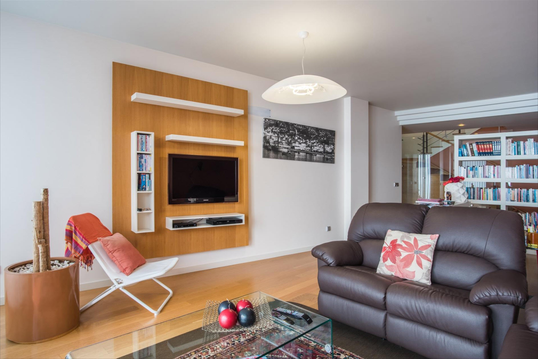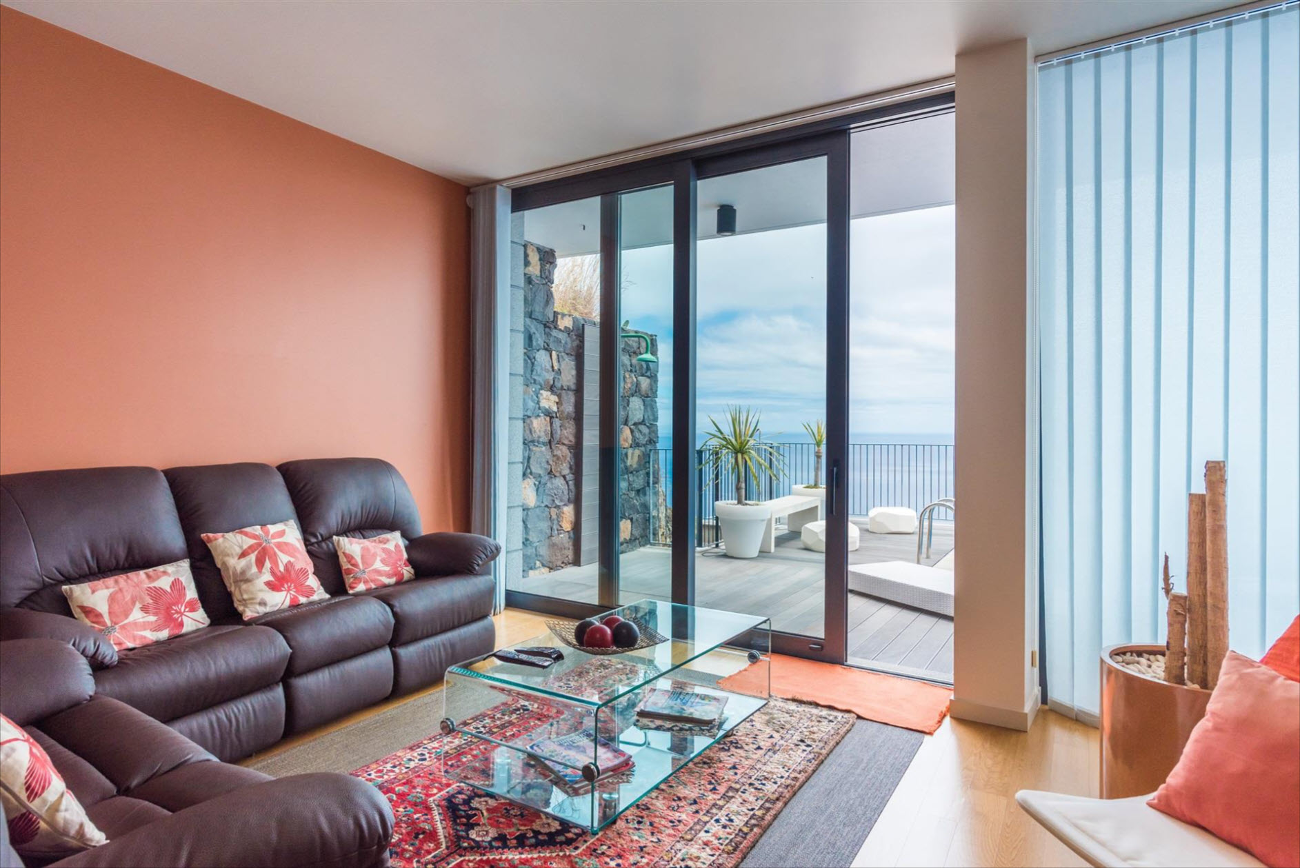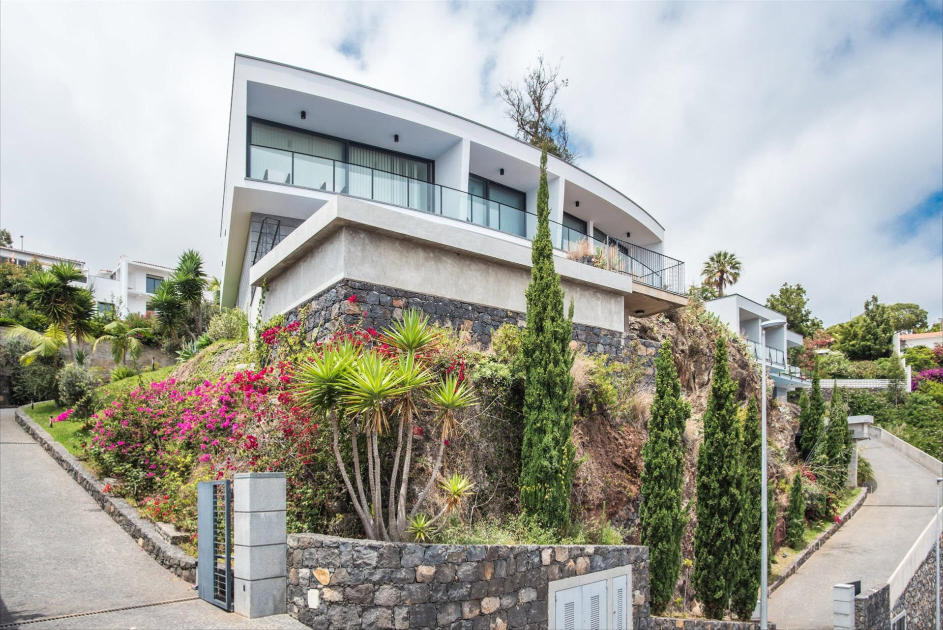 On the lower floor, you'll find another suite with a dressing room and a versatile multipurpose room, perfect as an office, gym, or home cinema. The outdoor area is a true highlight: A private pool invites you to relax, while the expansive terrace and landscaped gardens offer the perfect space to enjoy the sun and the spectacular views. The villa’s excellent sun exposure ensures natural light throughout the day. With three covered parking spaces and a prime location near the charming town of Santa Cruz, this property is a rare gem.