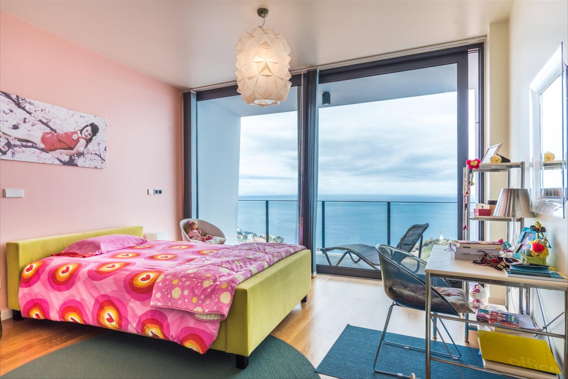 Welcome to this stunning villa in Santa Cruz, Madeira, where modern design meets breathtaking sea views. Situated on a spacious 1210 m² plot with a living area of 298 m², this property offers unparalleled comfort and elegance. The villa spans two levels: The entrance floor features a fully equipped kitchen with a pantry, a practical laundry room, and a spacious living area. Two luxurious suites with walk-in closets and private balconies complete this level