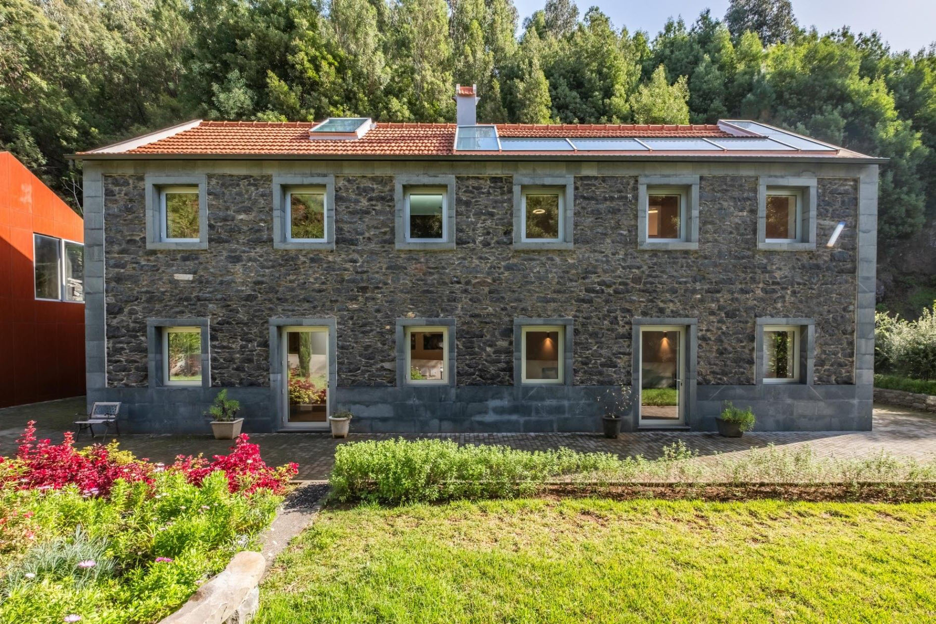 This unique property in Estreito da Calheta combines historic architecture with modern comfort. Once a butter factory and bakery, the property has been carefully converted into two villas. The historic charm has been preserved, while the interiors have been given a contemporary design. The main villa impresses with a generous 300 m² of living space, spread over two levels. On the first floor there is a modern kitchen, a utility room, storage facilities and a spacious living and dining area with a fireplace.