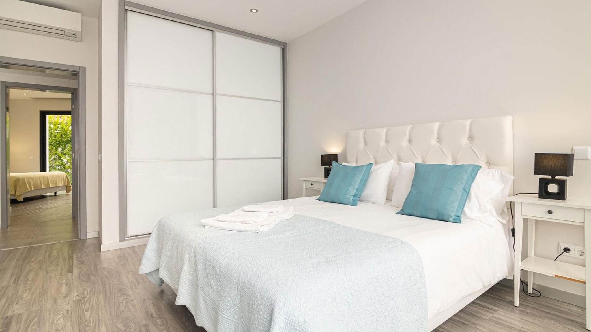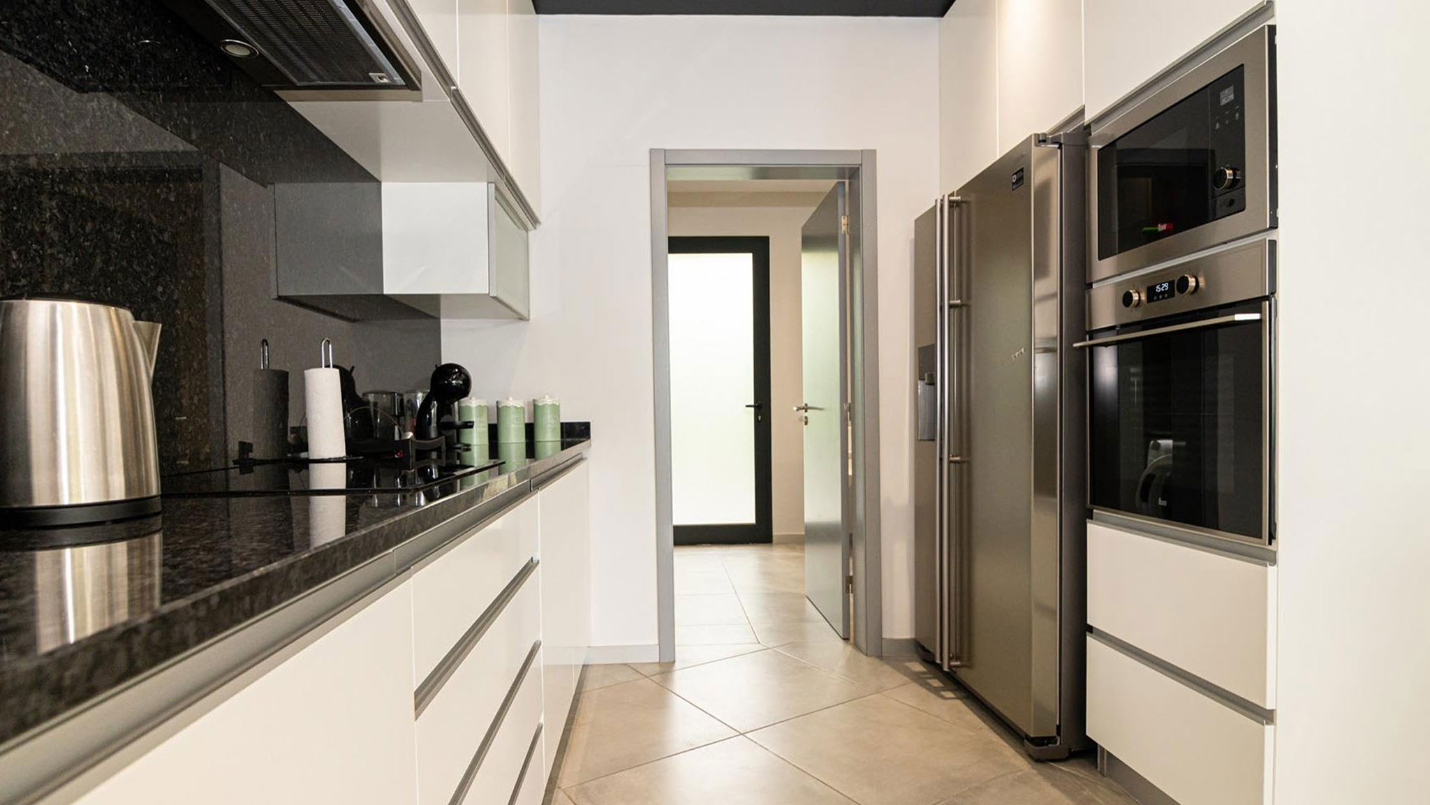 The villa was built to the highest standards in terms of technology and materials, has a central irrigation system, LED lighting, intercom, a large swimming pool and a very nice outdoor kitchen. The house is characterised by a large, bright living area with an open, fully equipped kitchen. The hallway next to the living room leads to the bedrooms, of which the master bedroom has an en-suite bathroom. The living room and two of the bedrooms face south and have direct access to the pool. The living room and bedrooms are air-conditioned.