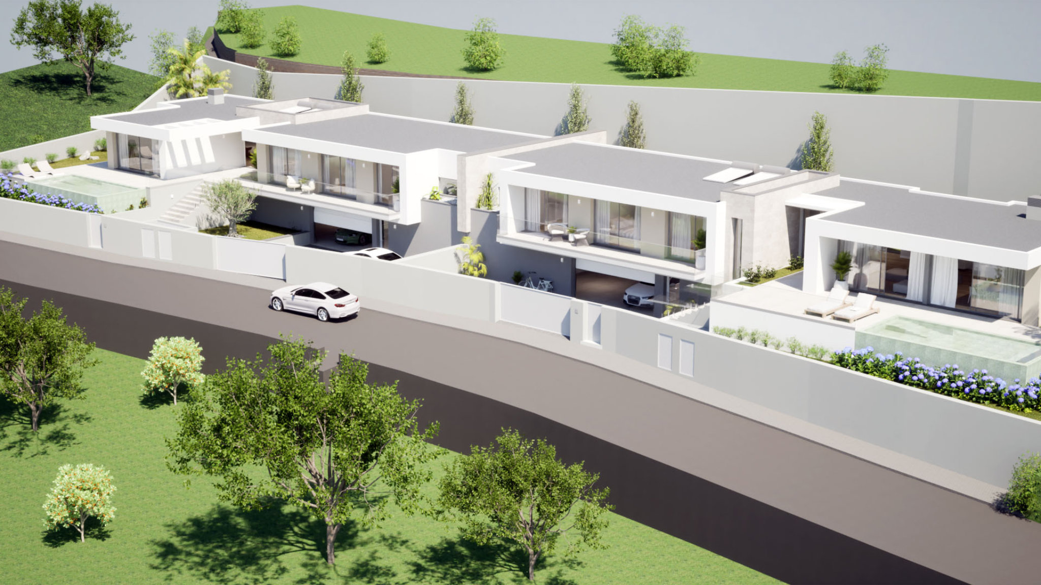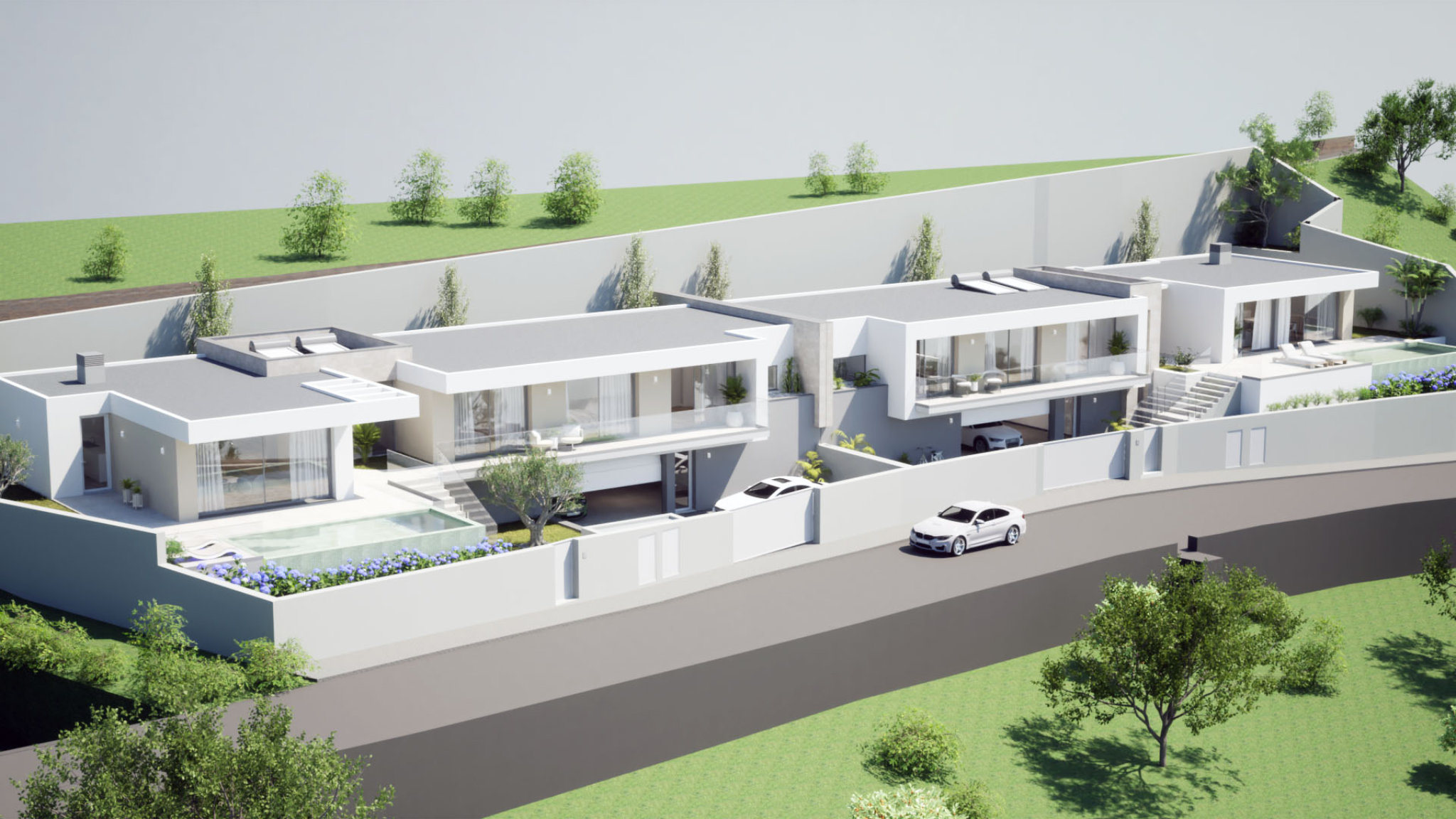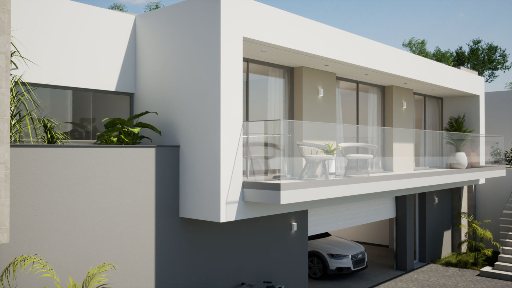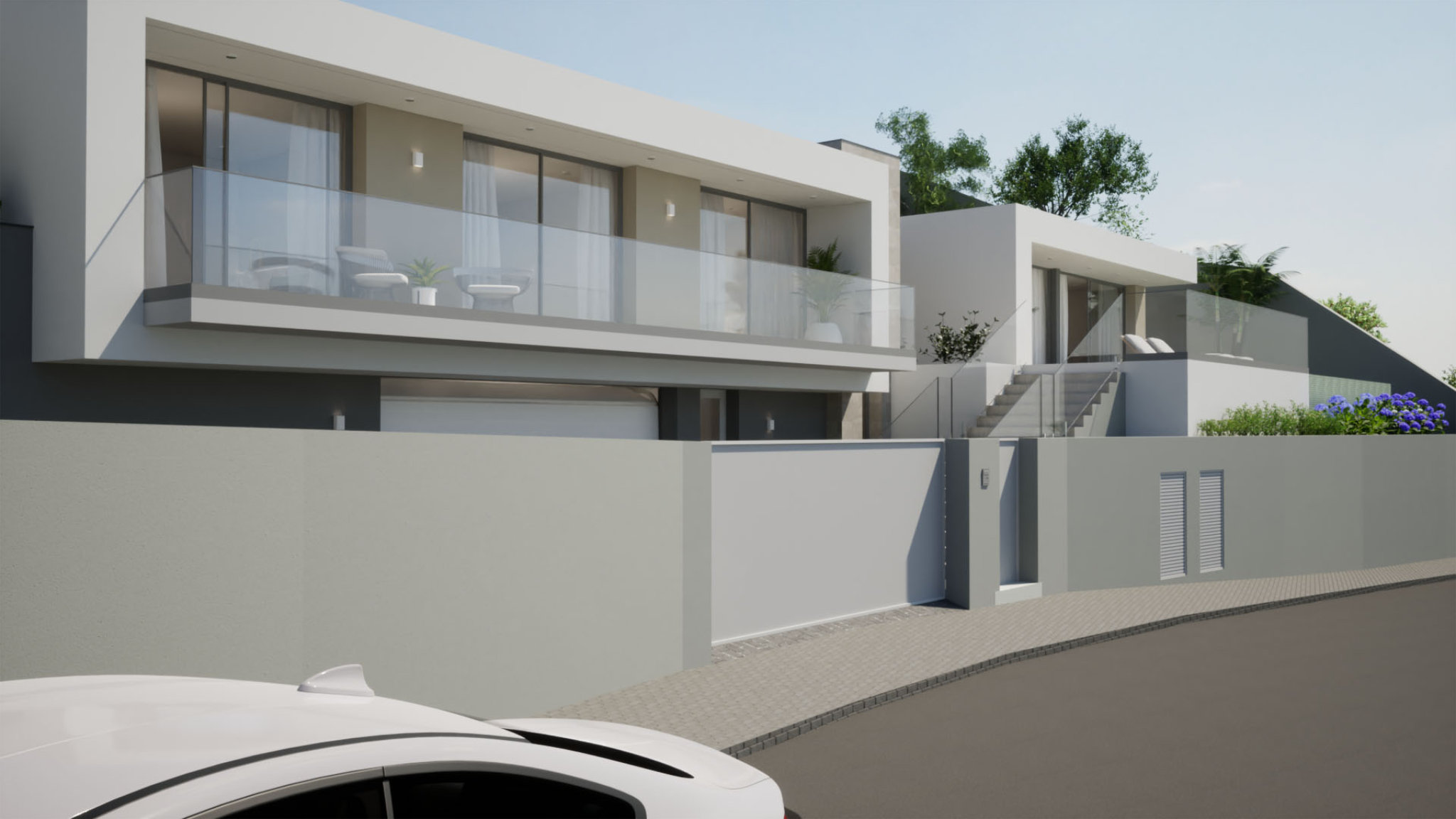 A few kilometers northwest of the capital Funchal lies a beautiful residential area in Arco da Calheta, characterized by luxury and lifestyle. In an absolute prime location, two fantastic new-build villas are being created on plots of land measuring a good 800 sqm each, with unobstructed sea views, using first-class building materials. The fantastic living/dining room with floor-to-ceiling windows forms the heart of this fantastic property and offers its owner breathtaking views over the hills down to the bay of Arco and the sea.