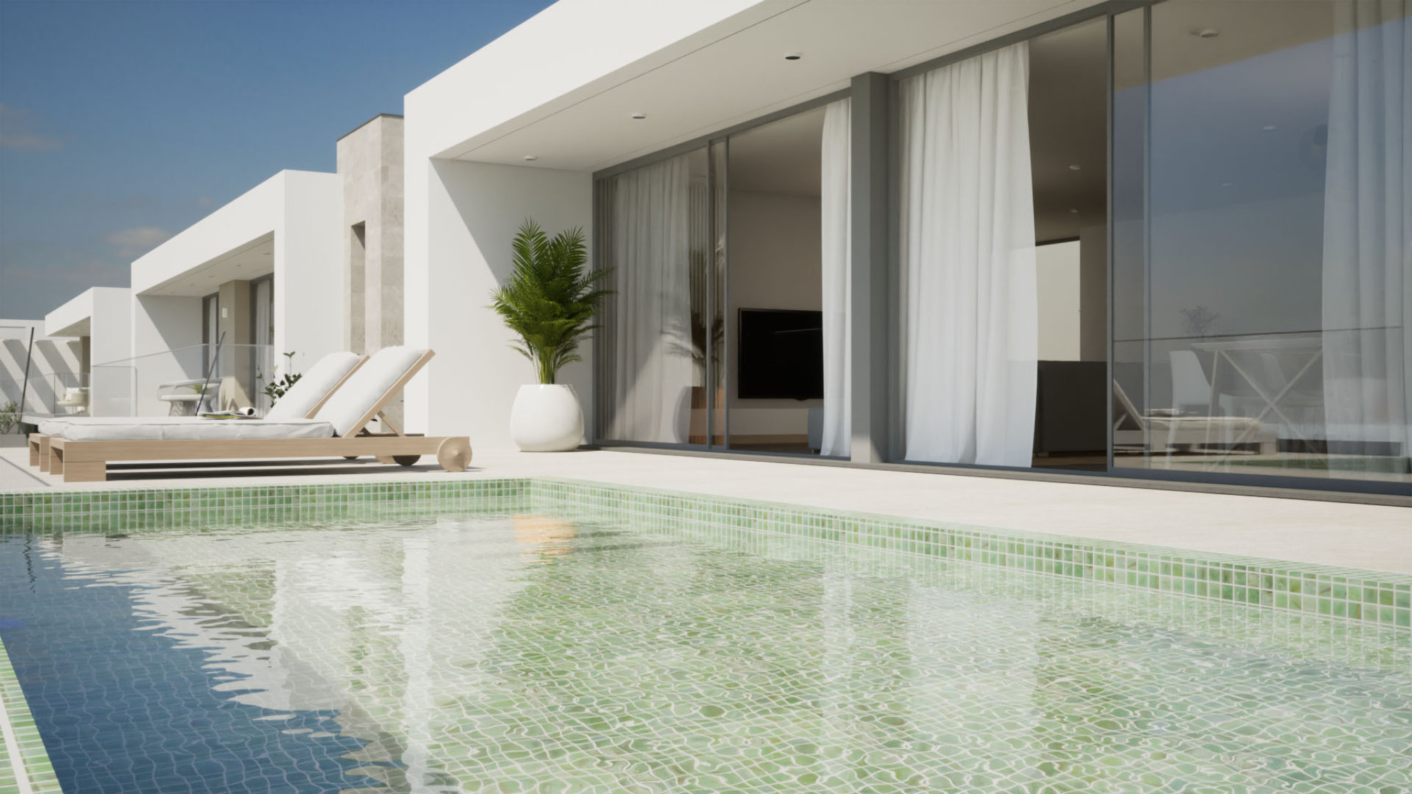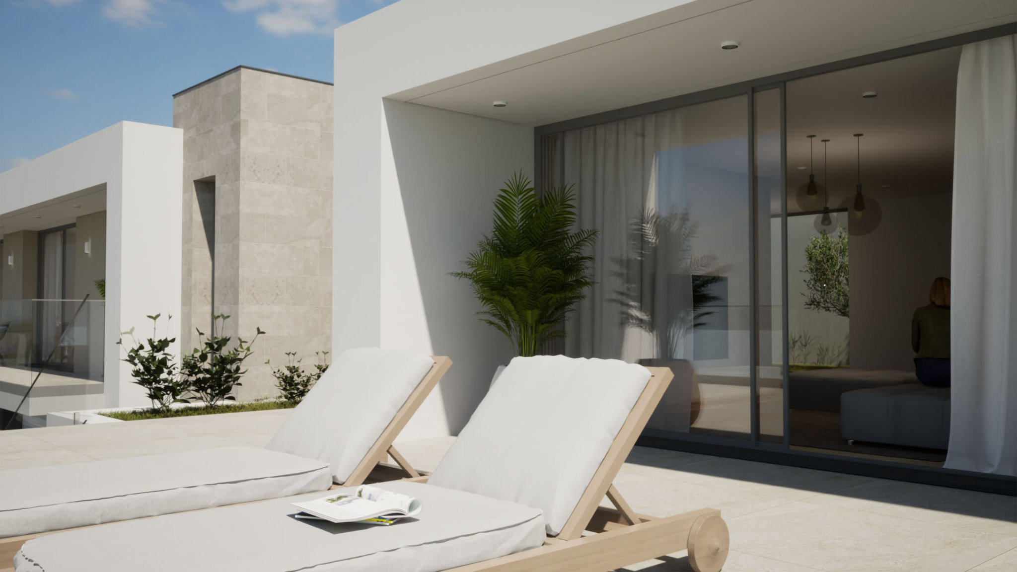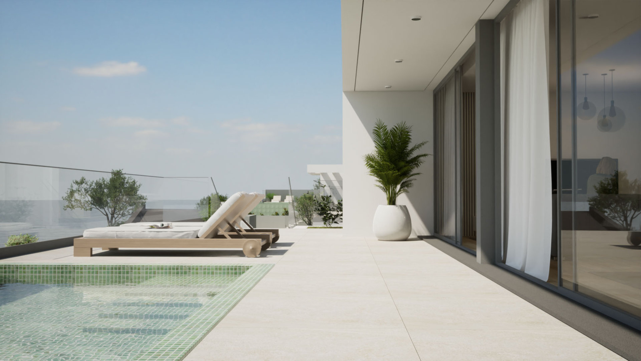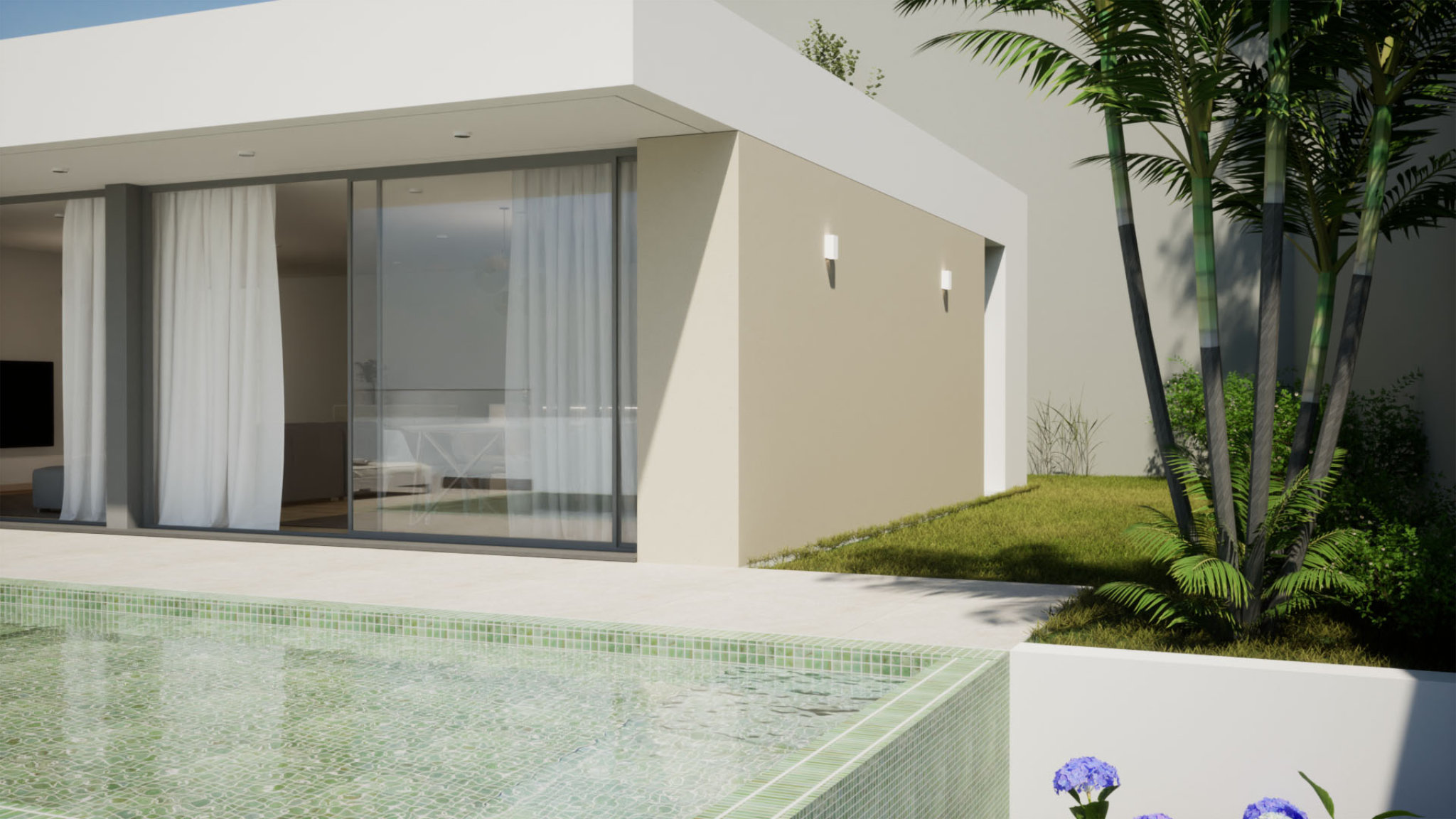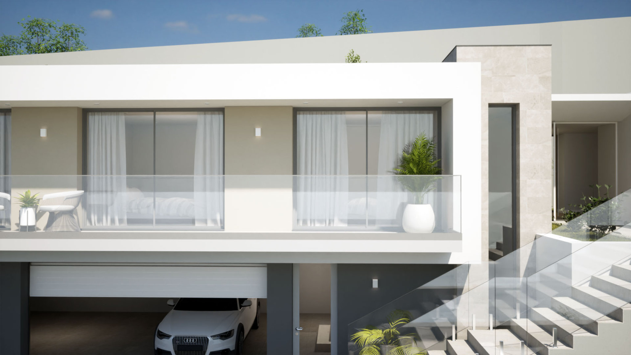 A few kilometers northwest of the capital Funchal lies a beautiful residential area in Arco da Calheta, characterized by luxury and lifestyle. In an absolute prime location, two fantastic new-build villas are being created on plots of land measuring a good 800 sqm each, with unobstructed sea views, using first-class building materials. The fantastic living/dining room with floor-to-ceiling windows forms the heart of this fantastic property and offers its owner breathtaking views over the hills down to the bay of Arco and the sea.