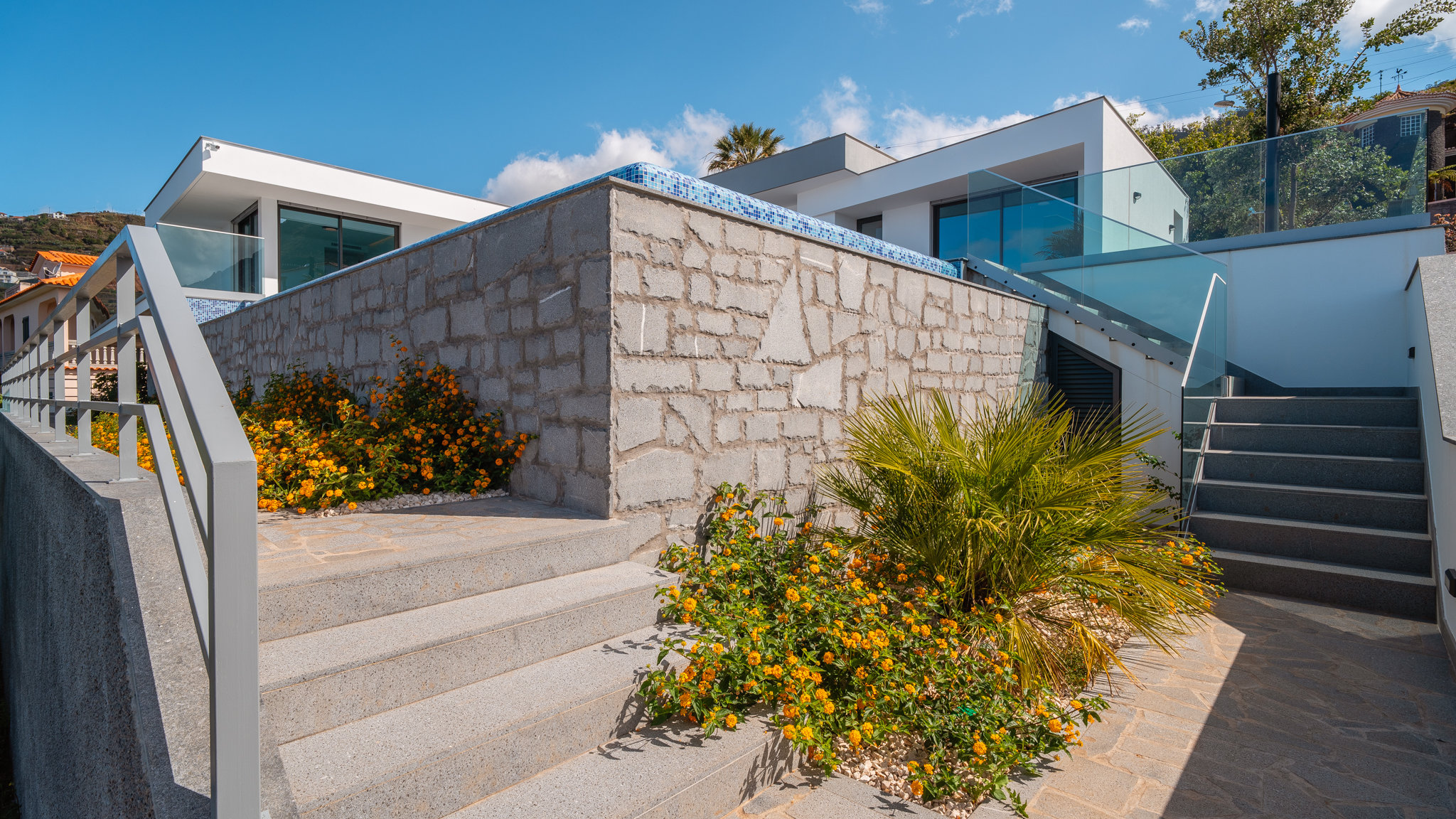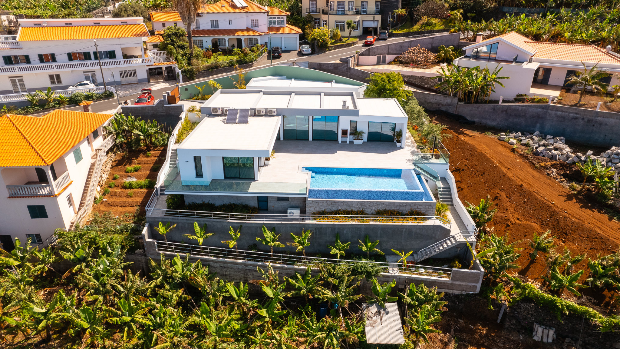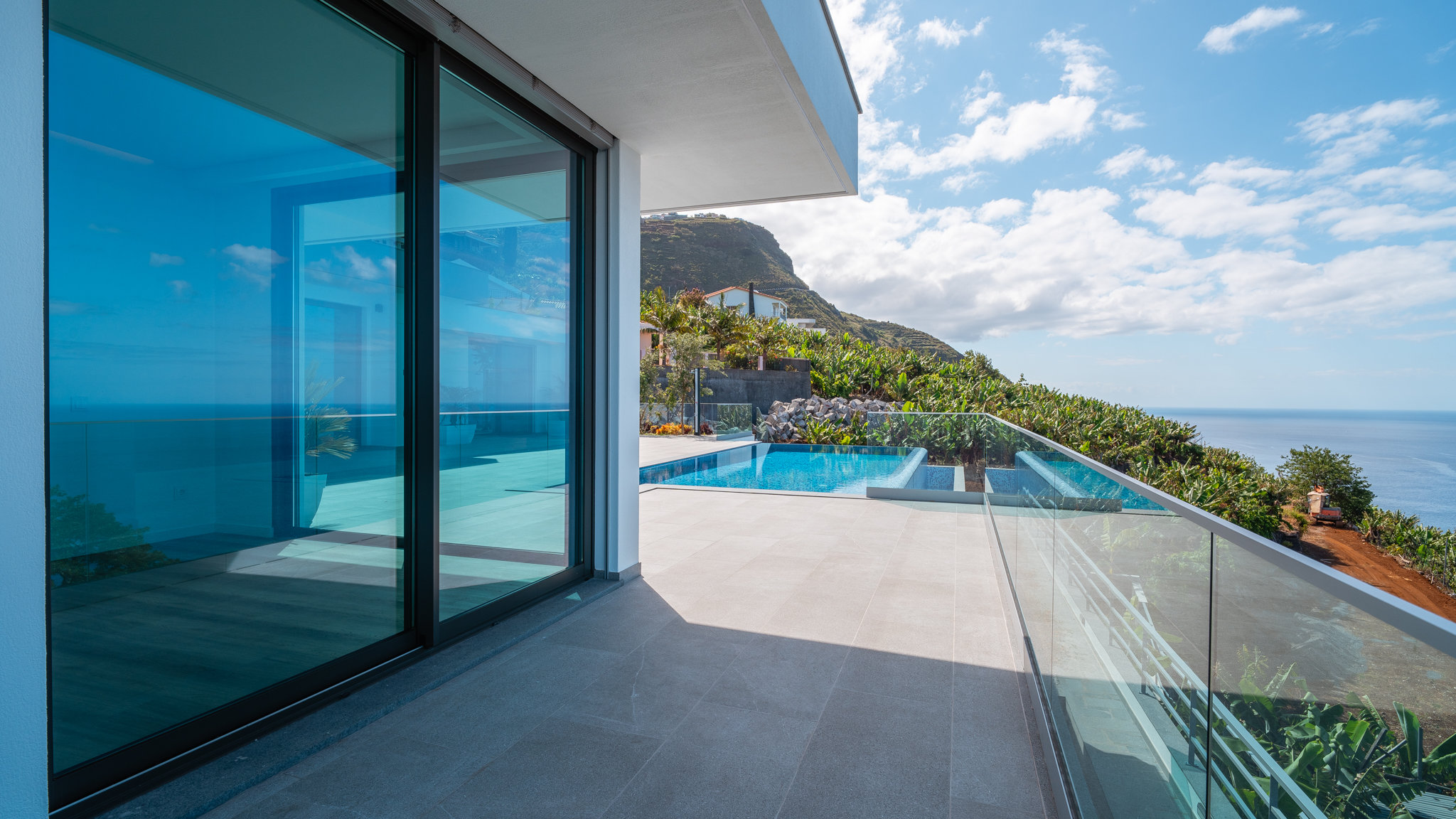 Harmoniously embedded in the beautiful coastal landscape of Madeira, an impressive construction project is being built on a fantastic plot close to the sea below the village of Arco da Calheta. The villa offers spectacular views of the Atlantic Ocean. The project, which is currently under construction, is being managed by a renowned construction company and combines modern facilities with a high level of quality.