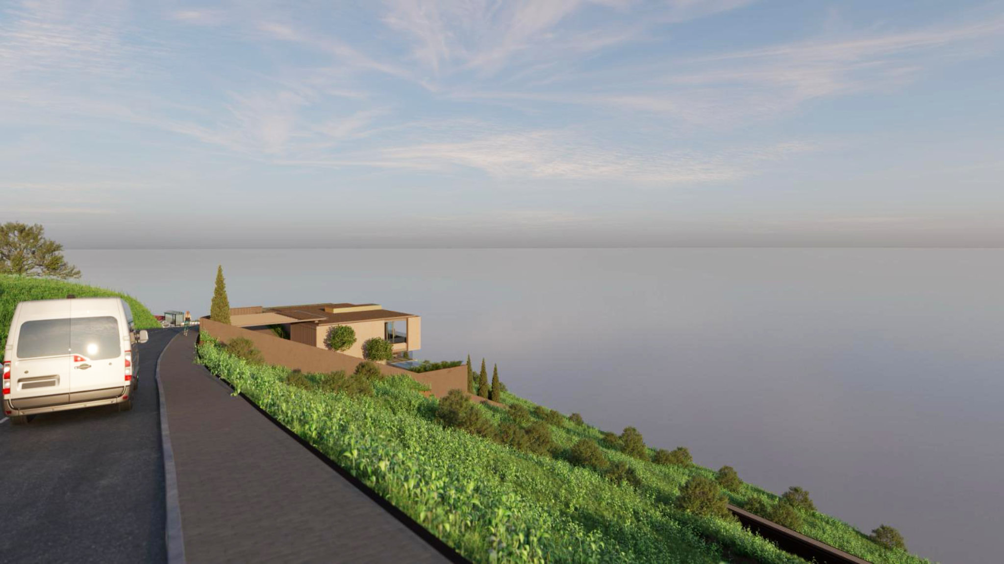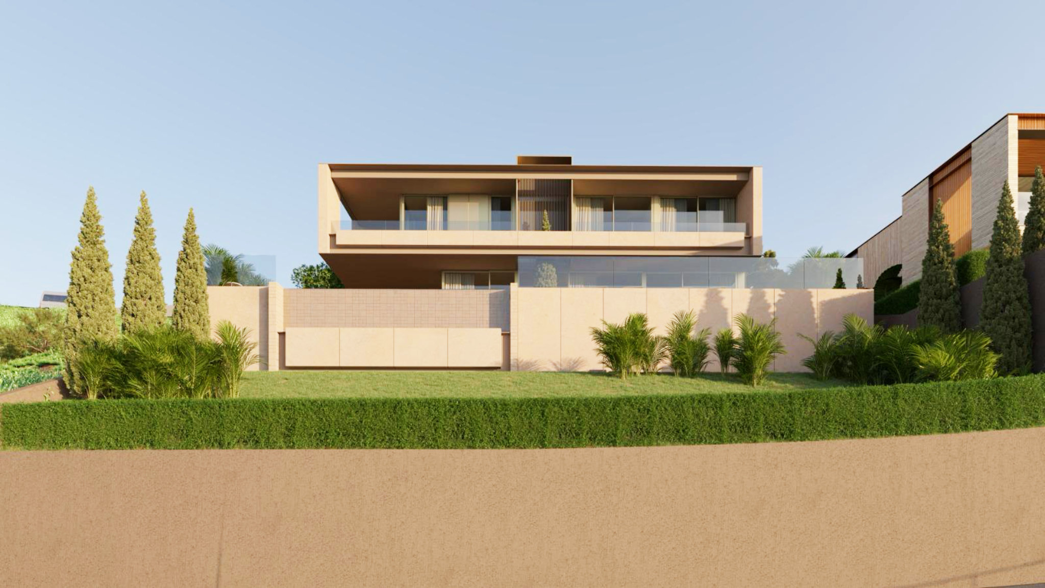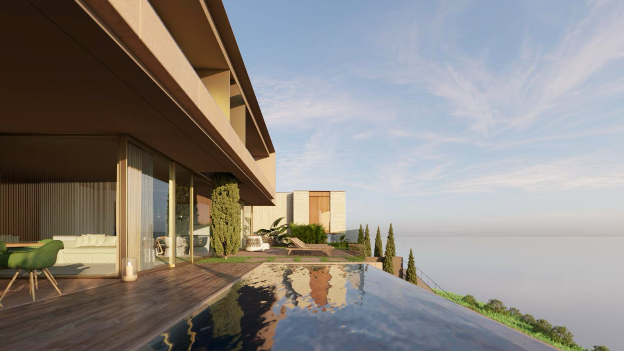 The lower level reveals a spacious, open-plan living and dining area with a high-quality fitted kitchen, equipped with brand-name appliances. Large windows not only provide a fantastic view of the sea but also direct access to an outdoor area that leaves nothing to be desired: a terrace with a garden, a large heated swimming pool, and a Jacuzzi, surrounded by a selection of Mediterranean plants. Here, you can experience romantic sunsets every evening and fully enjoy the unique atmosphere of Madeira. This project offers a rare opportunity to live in one of Madeira's most exclusive areas. Don't miss the chance to be part of this extraordinary living vision and secure a home that stands in perfect harmony with its natural surroundings.