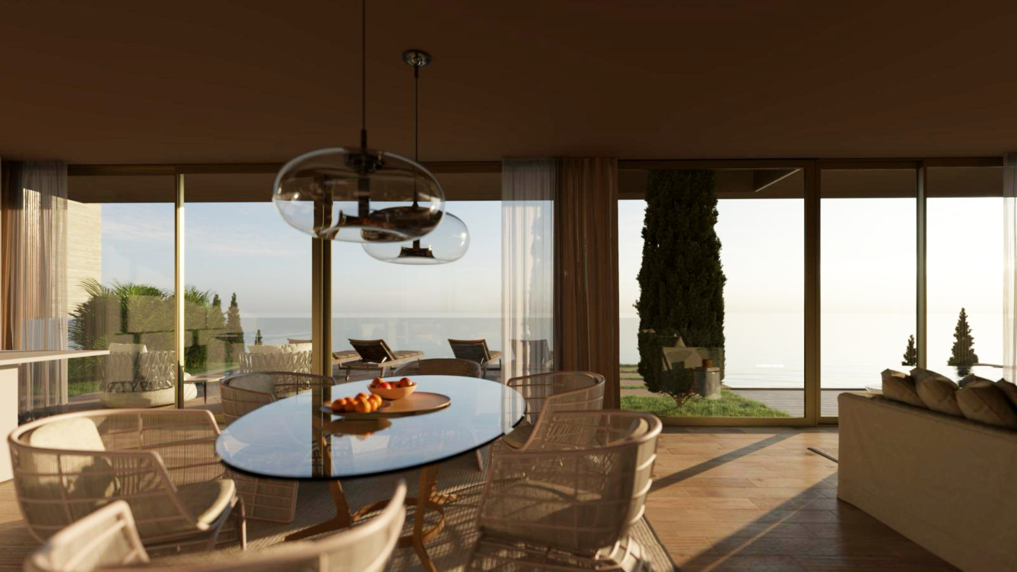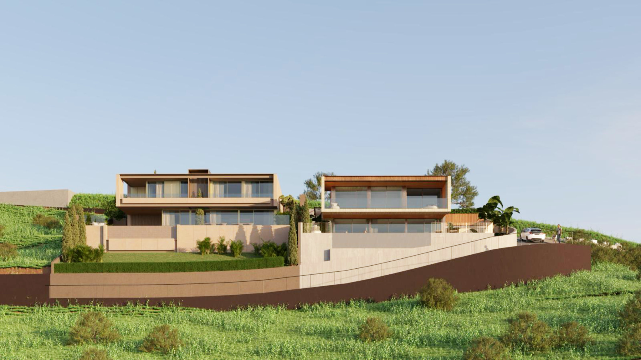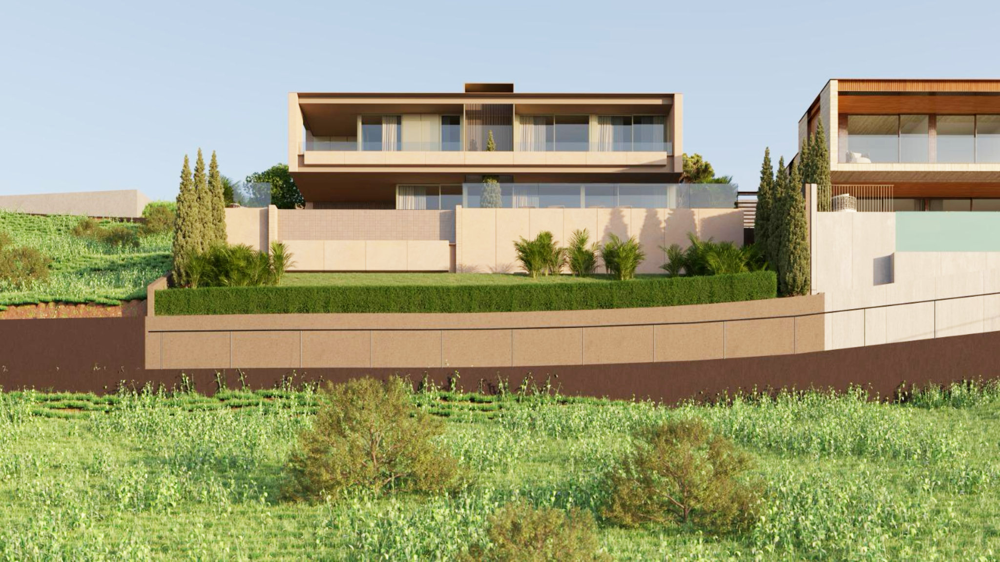 The lower level reveals a spacious, open-plan living and dining area with a high-quality fitted kitchen, equipped with brand-name appliances. Large windows not only provide a fantastic view of the sea but also direct access to an outdoor area that leaves nothing to be desired: a terrace with a garden, a large heated swimming pool, and a Jacuzzi, surrounded by a selection of Mediterranean plants. Here, you can experience romantic sunsets every evening and fully enjoy the unique atmosphere of Madeira. This project offers a rare opportunity to live in one of Madeira's most exclusive areas. Don't miss the chance to be part of this extraordinary living vision and secure a home that stands in perfect harmony with its natural surroundings.
