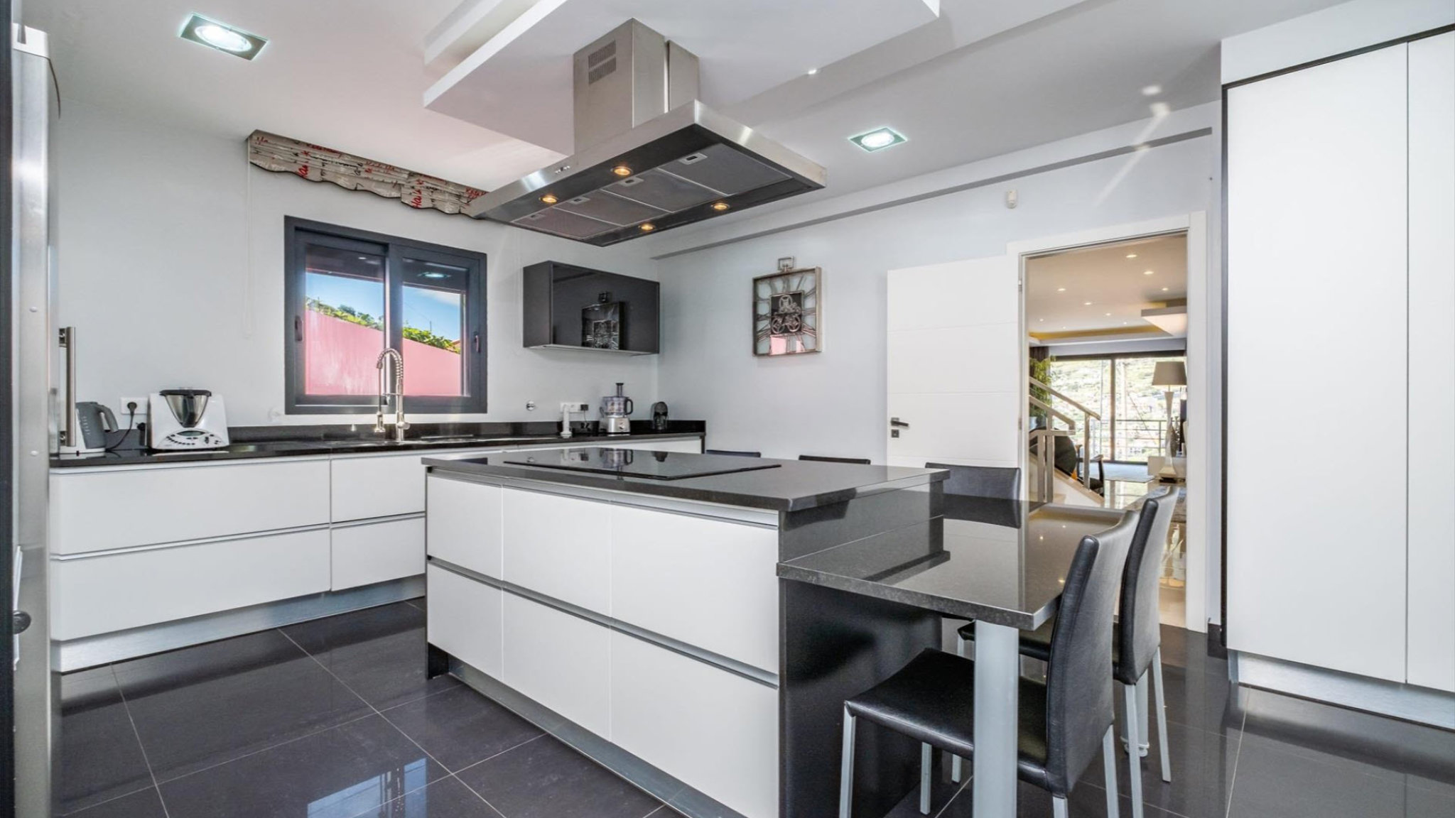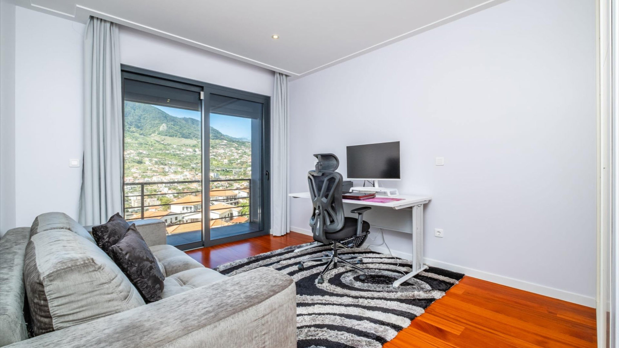 Welcome to this modern and detached villa, located in the charming parish of Machico. This exceptional property, with a gross building area of 270 square meters, impresses with its high-quality finishes and timeless elegance. Built in 2014, this residence offers everything your heart desires. Upon entering the ground floor, you are greeted by a spacious living and dining area that stands out for its brightness and direct access to an outdoor seating area. The fully equipped kitchen leaves nothing to be desired and invites you to culinary adventures. A guest bathroom is available for the living area, completing the room offerings on this level. From here, you also have direct access to an inviting barbecue area and an outdoor space, ideal for social gatherings and relaxing moments.