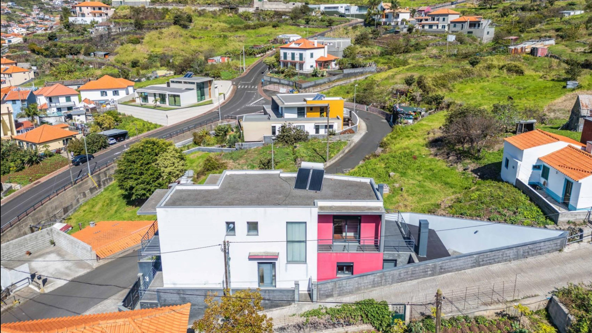 The upper floor of the villa impresses with a stunning master suite. This offers not only a private bathroom and a walk-in closet but also a private balcony, providing you with a place of peace and relaxation. Additionally, on this floor, you will find two more bedrooms and a shared bathroom, together creating a comfortable and stylish living environment. In the basement, you will find a spacious garage with room for at least two vehicles, a practical laundry room, and another full bathroom. These additional rooms offer all the comfort and necessary functionality for your family life. The location of this villa could not be better. Within just five minutes, you can reach essential services such as restaurants, supermarkets, and schools. The quick access to main roads ensures excellent connectivity and significantly eases your daily life. This elegant villa in Machico combines the highest living comfort with a prime location. Discover your new home and enjoy life in an environment that offers both luxury and convenience.